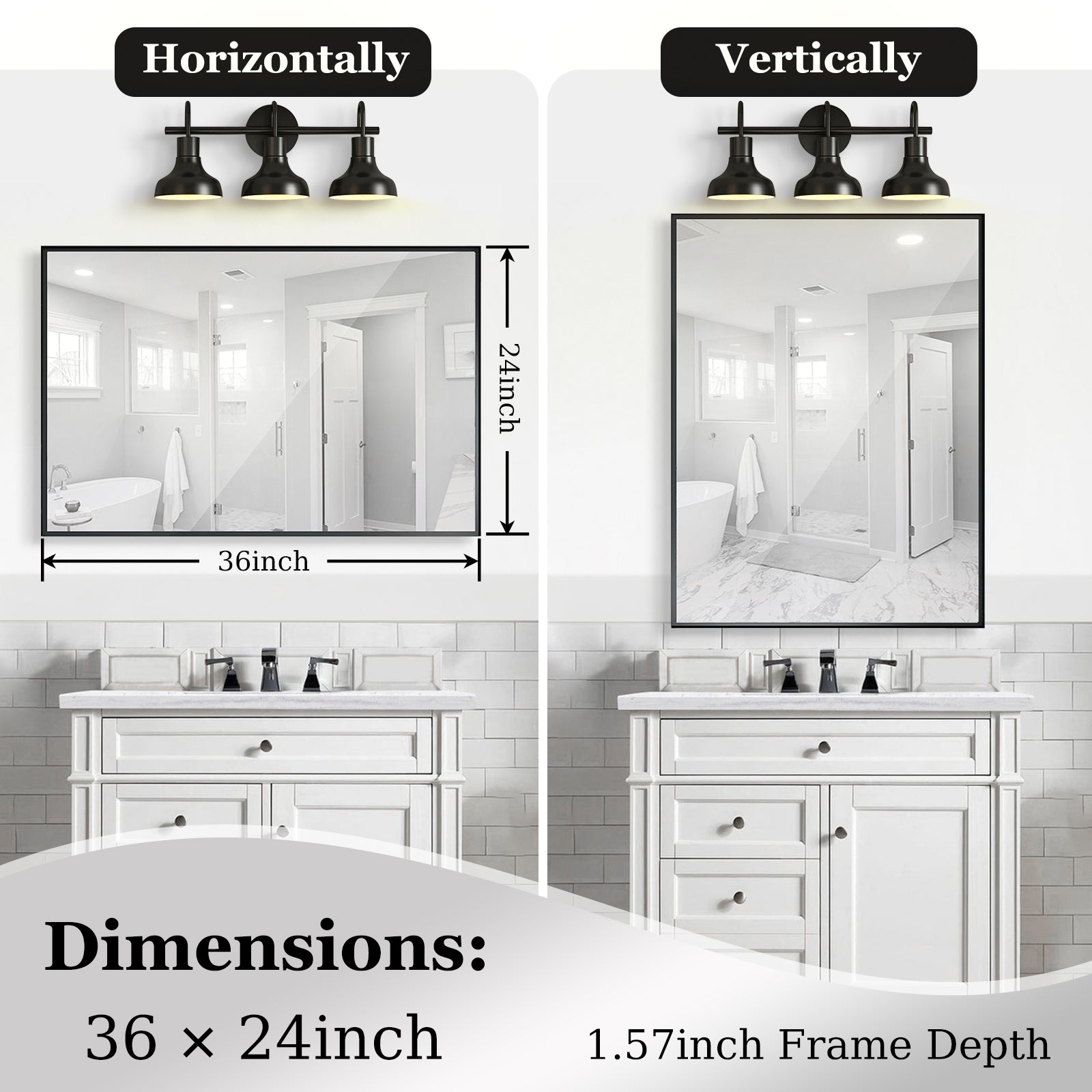 - [Glossy brushed silver metal frame mirror] : The bathroom vanity mirror uses a high-quality aluminum alloy frame, which is rust resistant and does not deform. Practical rectangular mirror, simple classic clean lines, with modern and industrial style.