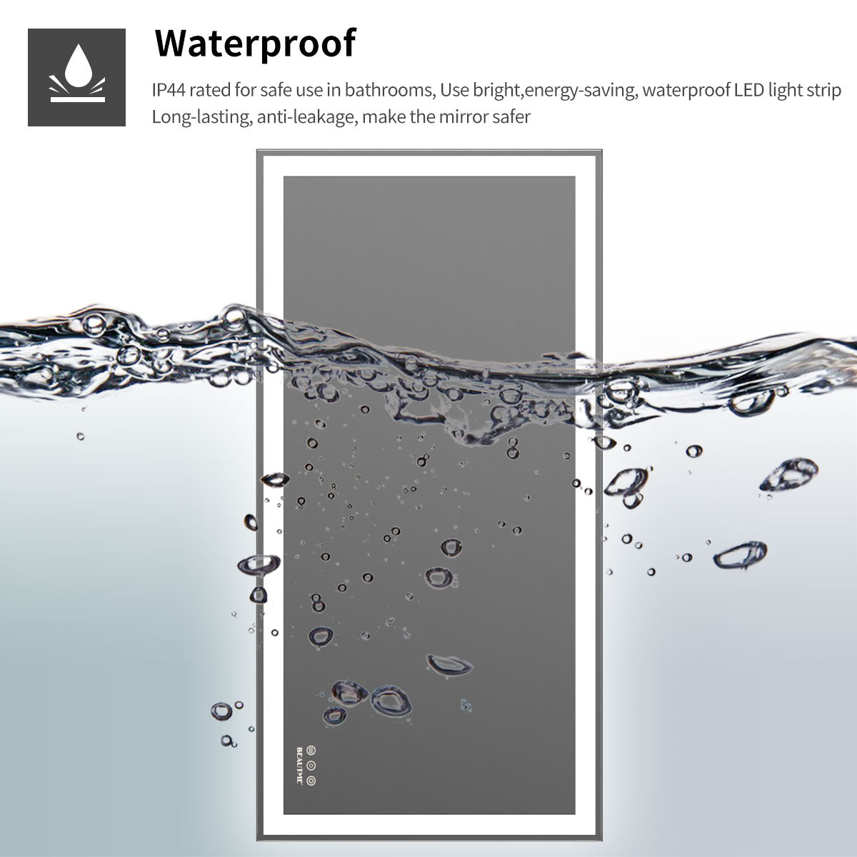 - Waterproof, Safe and Durable: IP44 waterproof grade, safe and durable to use. The five-layer protection on the back of the LED mirror for bathroom is more secure and can ensure that the components of the bathroom mirror are not damaged during use. The waterproof LED strip has a leak-proof function and is safer to use.