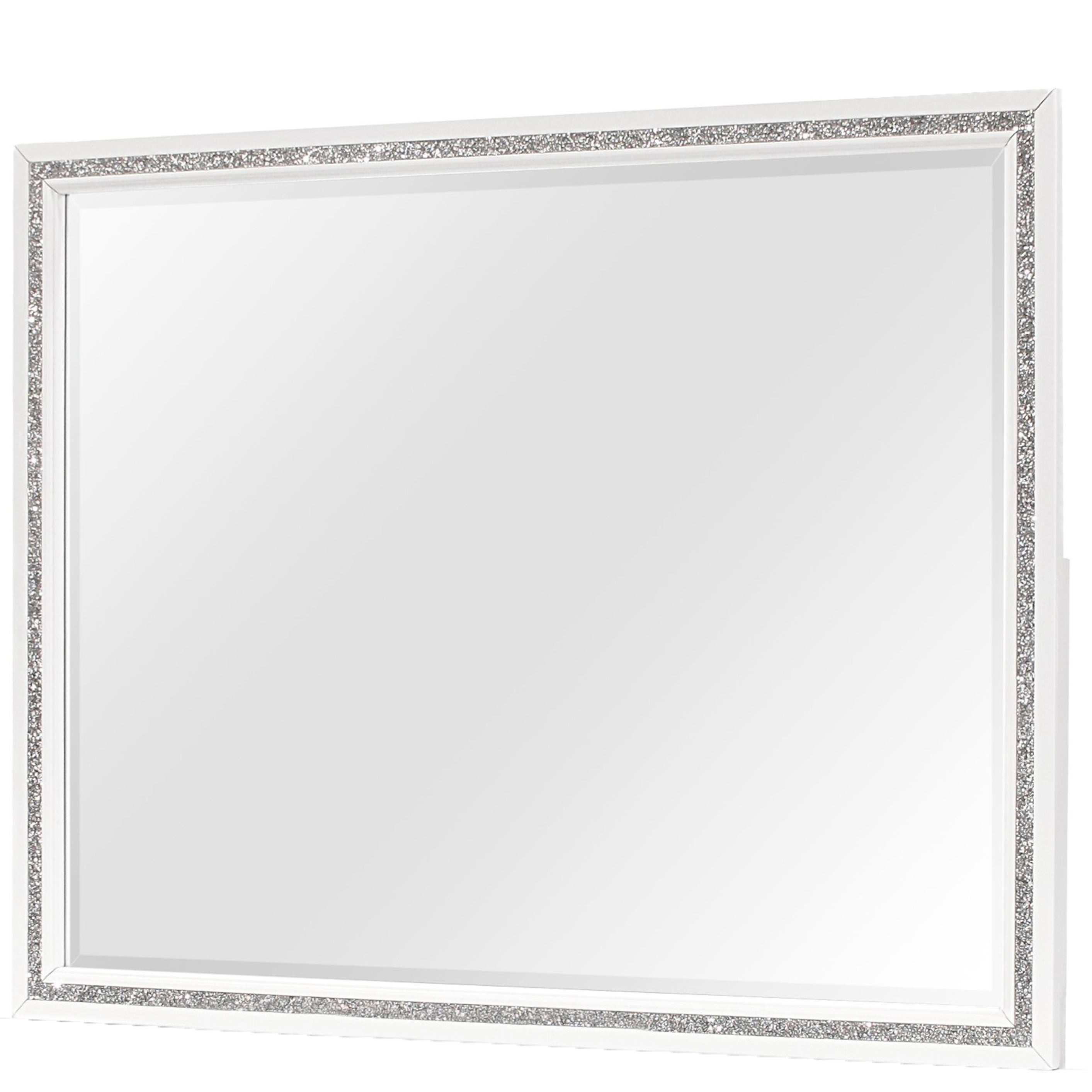 Elevate your dressing area with the Almera Glitter White Mirror — a transitional-glam accent that blends luminous style with thoughtful construction. Finished in a soft white and framed with mixed solid and engineered woods, this mirror adds brightness and refinement to bedrooms, dressing rooms, or hallways while offering durable mounting options for secure installation.
