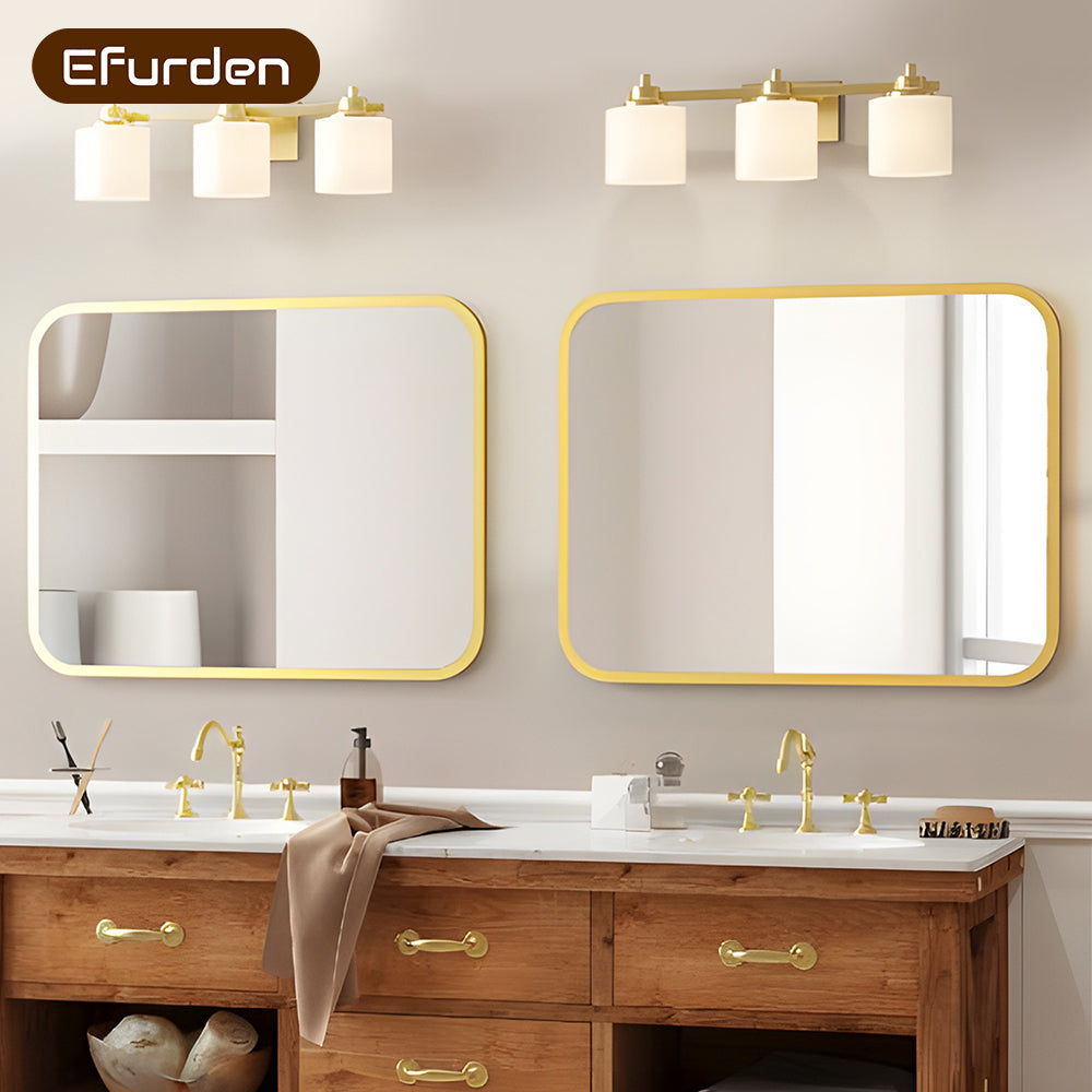 Give your bathroom or bedroom a sleek, modern upgrade with this elegant gold-framed vanity mirror. Designed for durability and a seamless look, it combines a shatterproof glass surface with a corrosion-resistant aluminum frame and rounded corners for a soft, contemporary profile. Suitable for horizontal or vertical mounting, this mirror is ideal above sinks, vanities, and dressers.