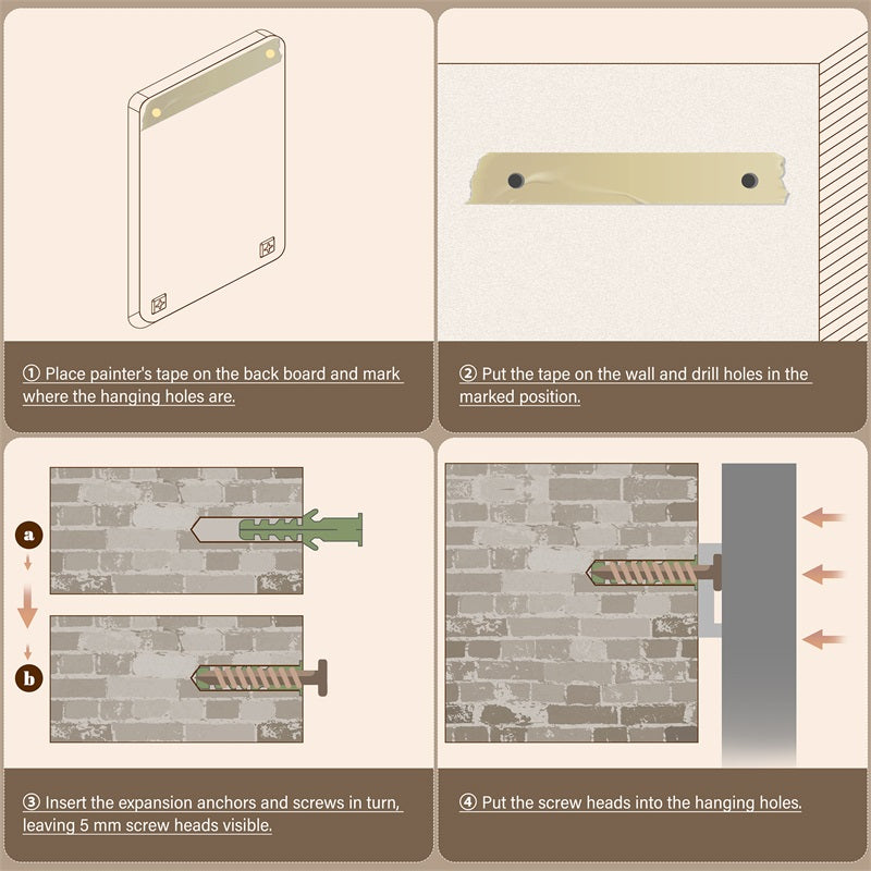- [Easy To Install]Hanging this bathroom wall mirror is very simple and takes only 5 minutes. All you have to do is measure the distance with tape, screw the screws into the wall, and hang the mirror. We provide all of the installation accessories and very detailed instructions.