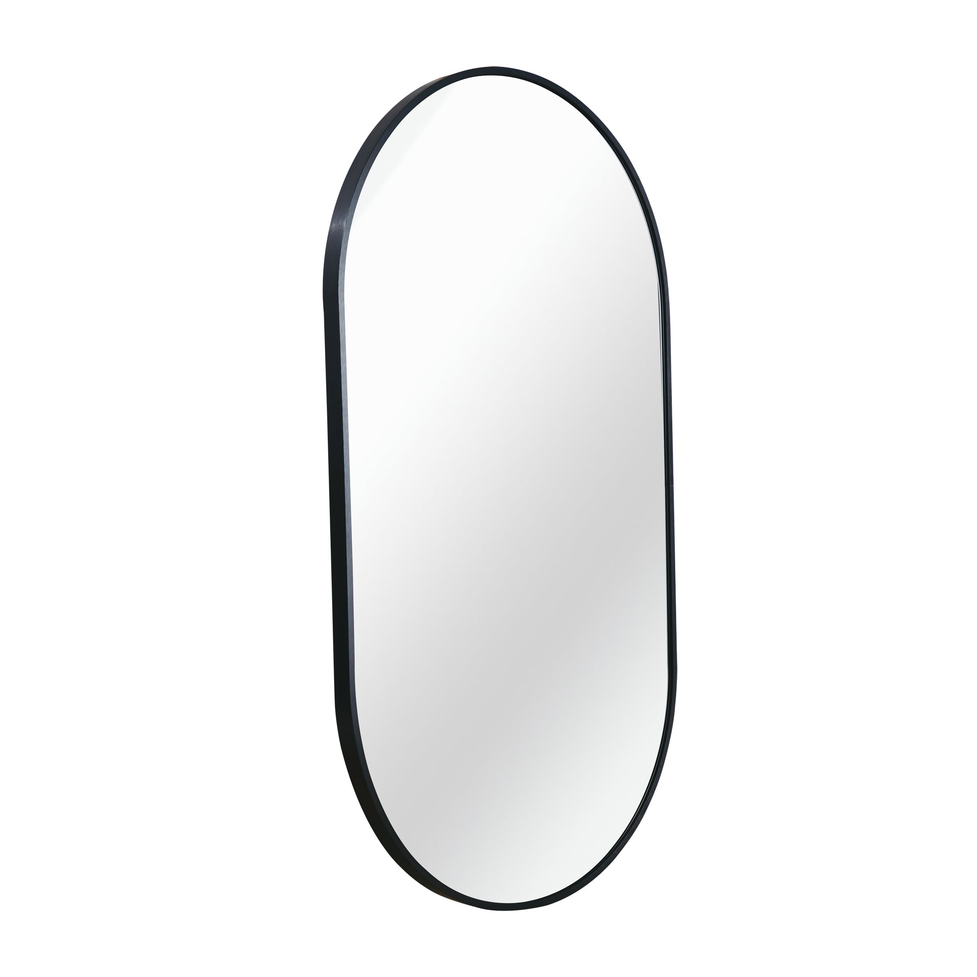 Add a touch of modern elegance to any room with this sleek black oval metal mirror. Its slim aluminum frame and high-definition glass create a refined focal point that complements contemporary and minimalist interiors. Built for safety and durability, it arrives ready to hang and offers a polished look for entryways, bathrooms, bedrooms, or living spaces.
