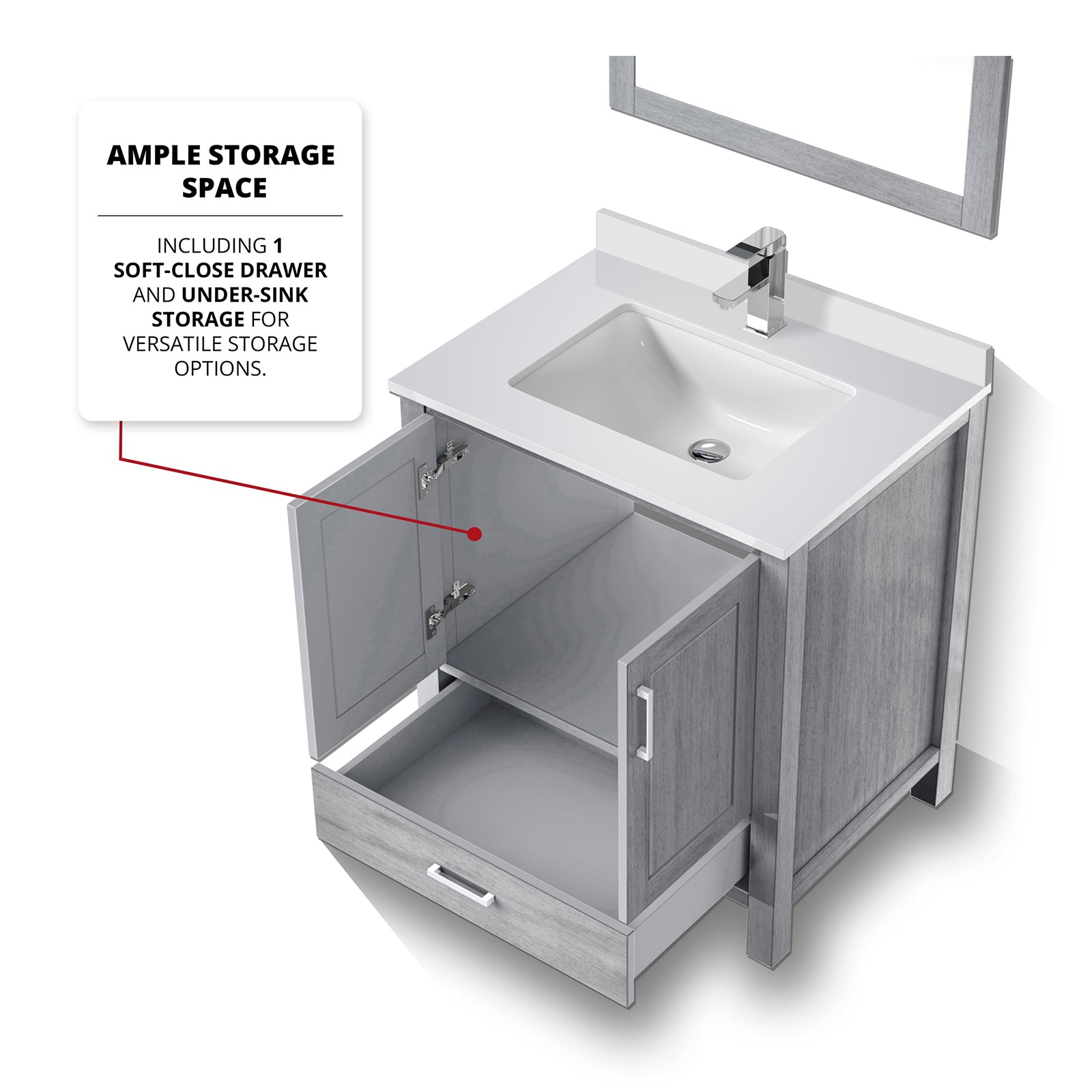 - Mirror Included: 28 in. W x 32 in. H framed mirror, coordinated to match the vanity’s finish for a cohesive look.