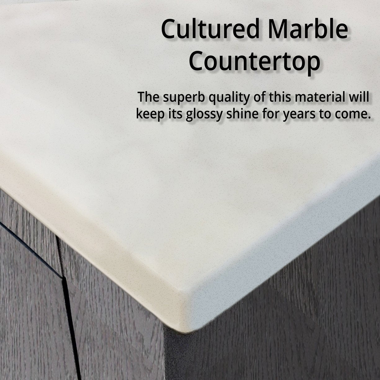 - Countertop: Cultured marble top with scratch- and stain-resistant surface for long-lasting beauty and easy maintenance.