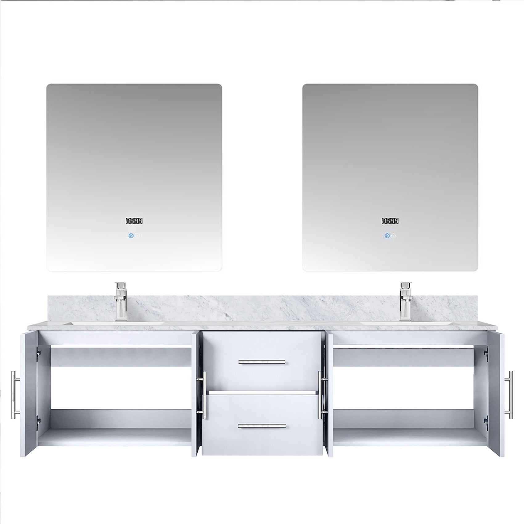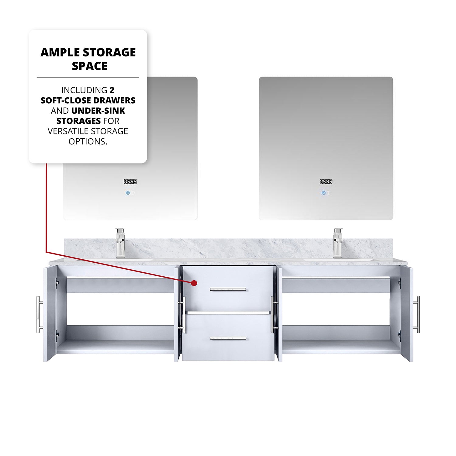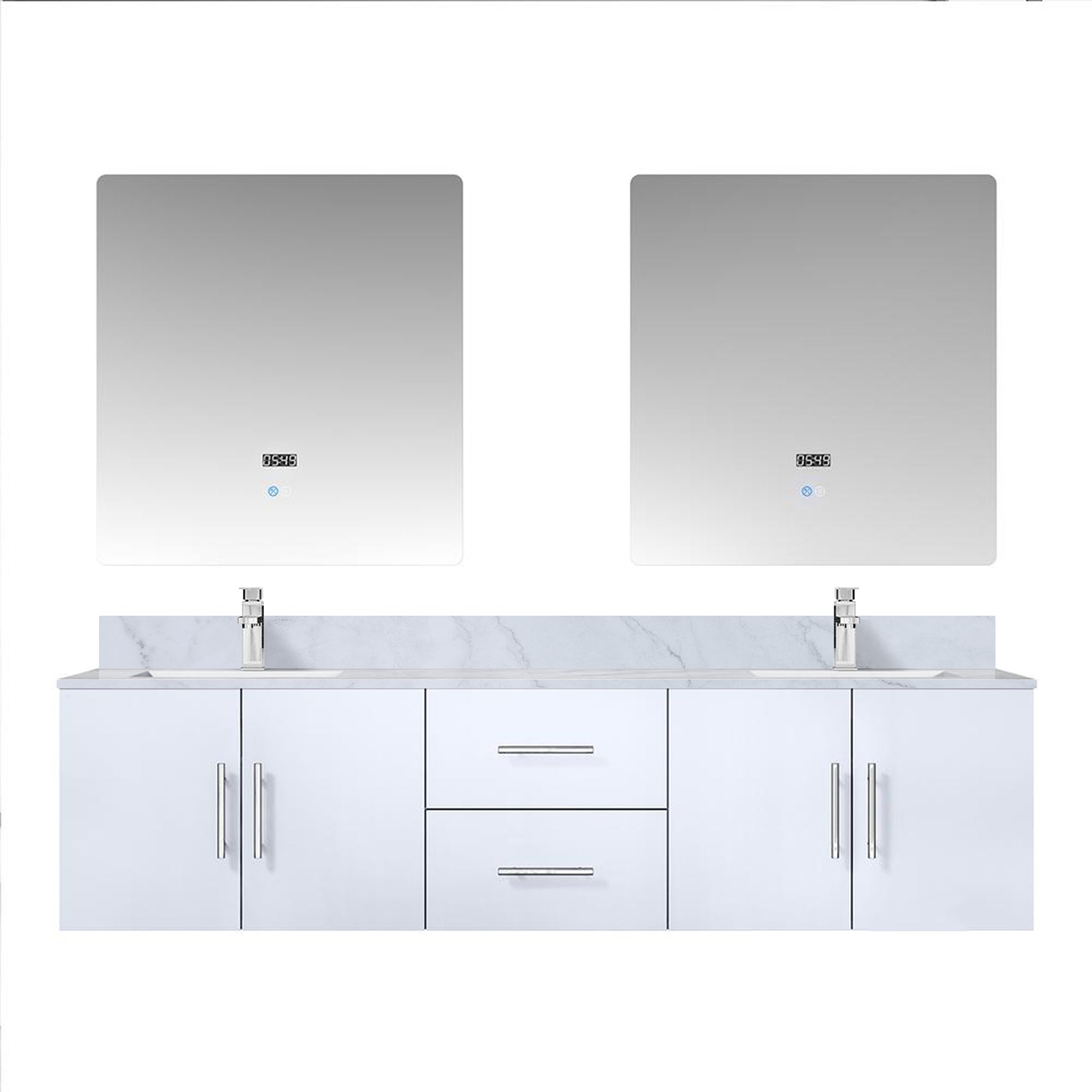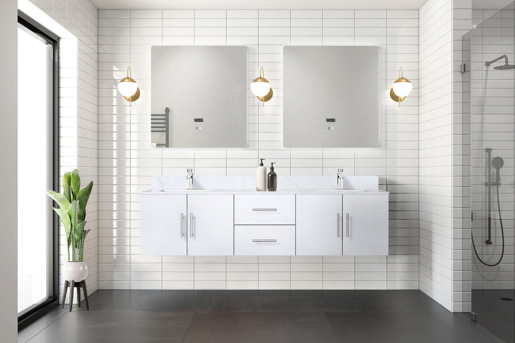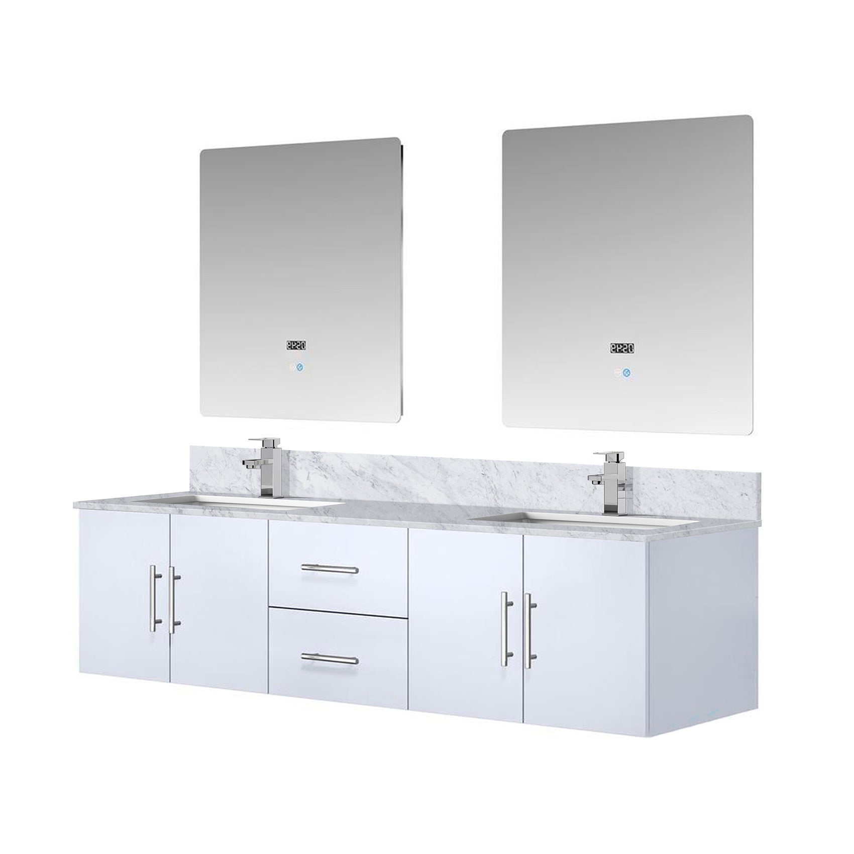 Elevate your bathroom with this contemporary Glossy White Double Bath Vanity, a complete, ready-to-install ensemble that combines modern style with durable, high-performance materials. Thoughtfully designed for functionality and visual appeal, it includes a Carrara marble top, twin LED mirrors, and premium chrome faucets—making it ideal for shared bathrooms or master suites.