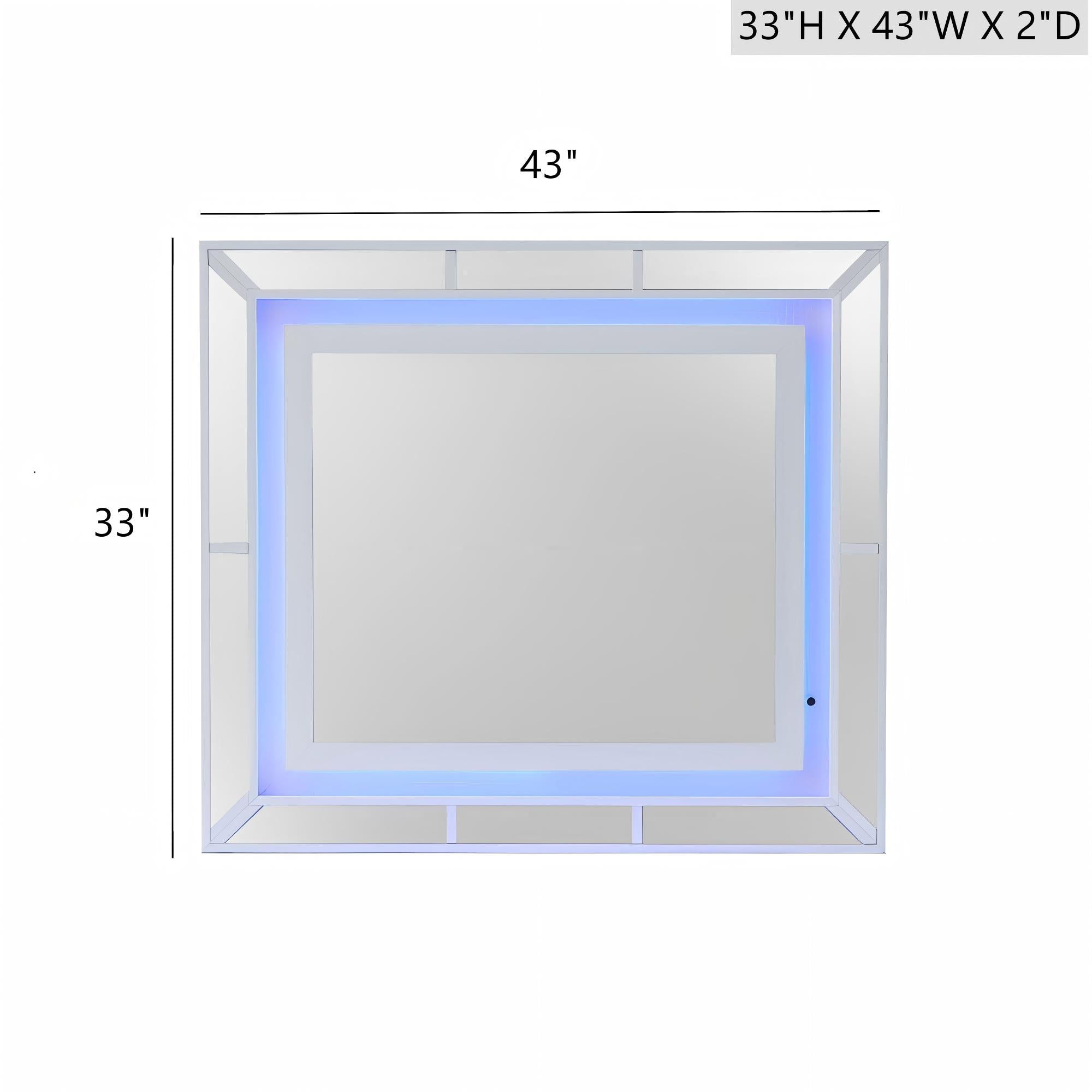 Elevate your bedroom with the Hollywood Hills G8180-M mirror—a refined, LED-lit wall mirror designed to complement the matching dresser and enhance your daily routine. Its clear, low-distortion glass and elegant wood veneer with solid wood frame deliver both functionality and timeless style, while integrated LED lighting and decorative mirror accents create a flattering, ambient glow for grooming and dressing.
