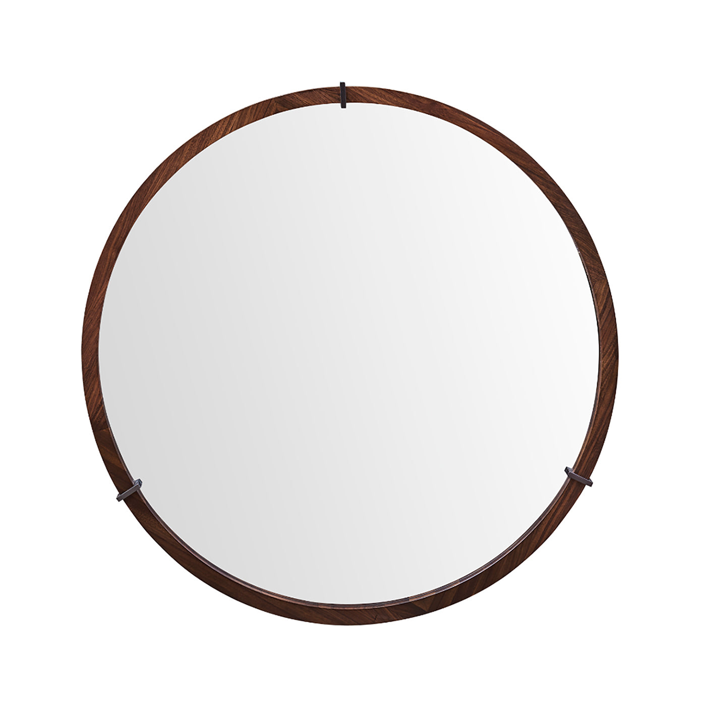 Bring a touch of mid-century elegance and contemporary edge to your space with this Hausen round accent mirror. Combining rich brown walnut wood and veneer with subtle gunmetal geometric detailing, it’s designed to visually expand rooms while serving as a striking focal point in entryways, living rooms, bedrooms, or hallways.