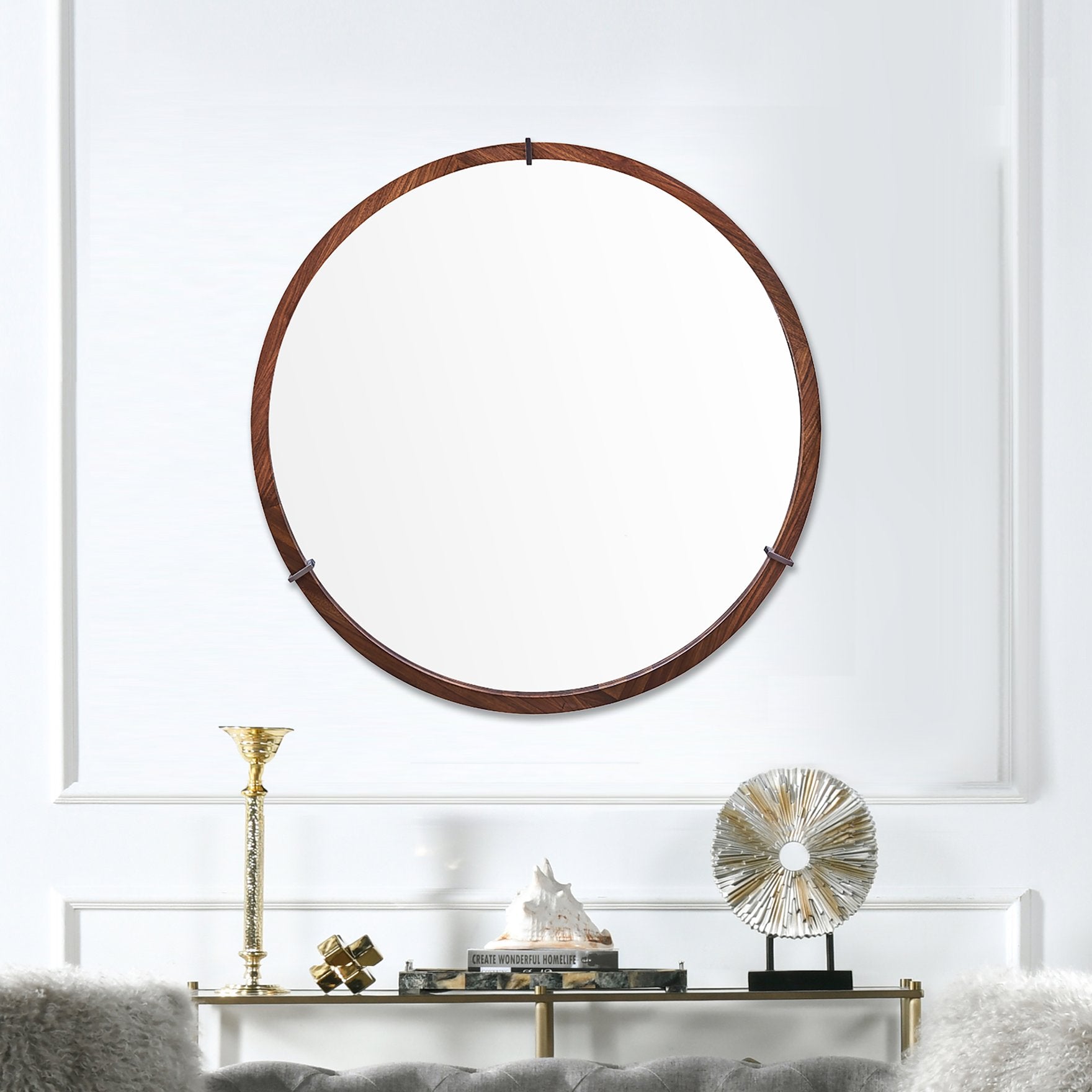 - Mirror Diameter: 31.5" — the reflective surface sized to accent and open up walls