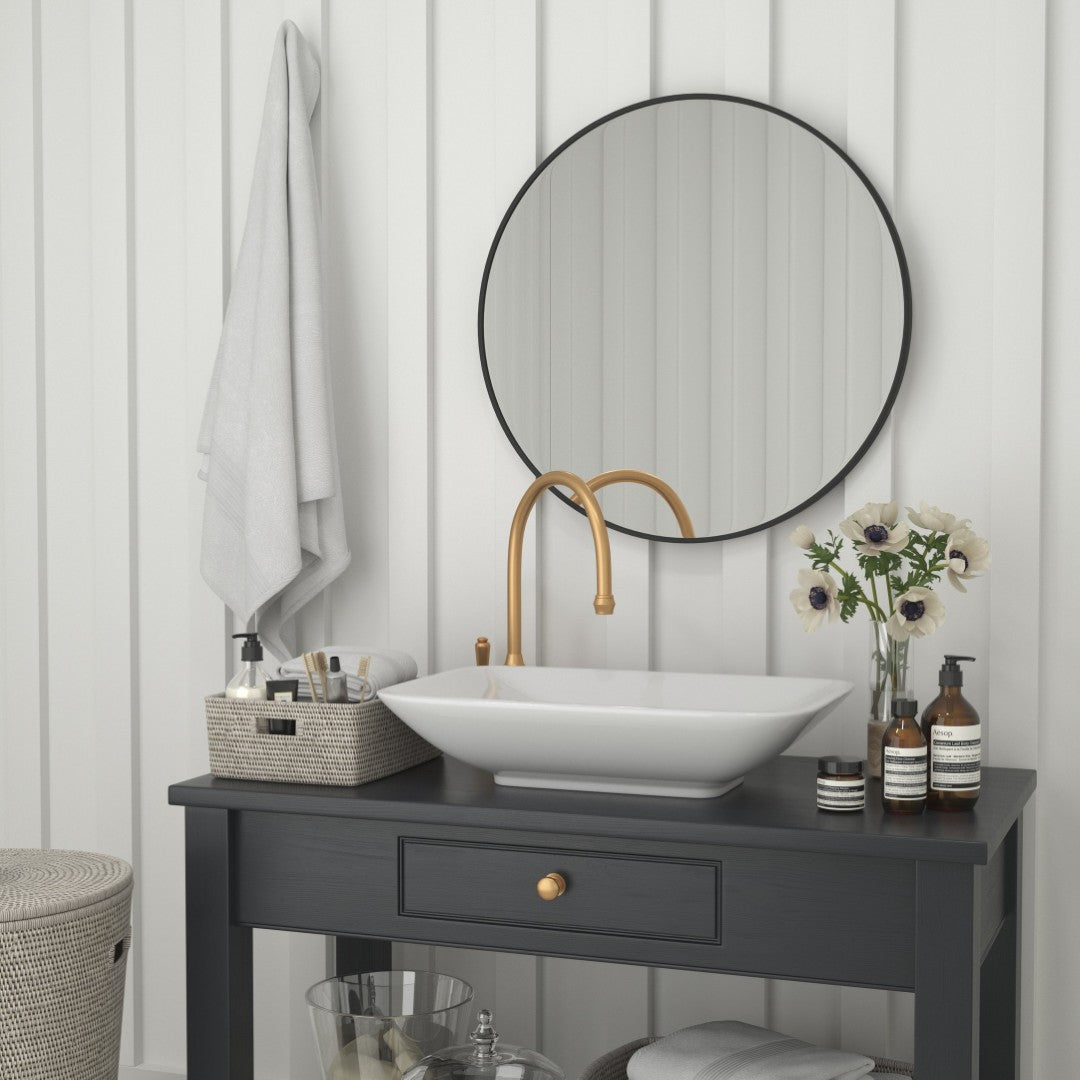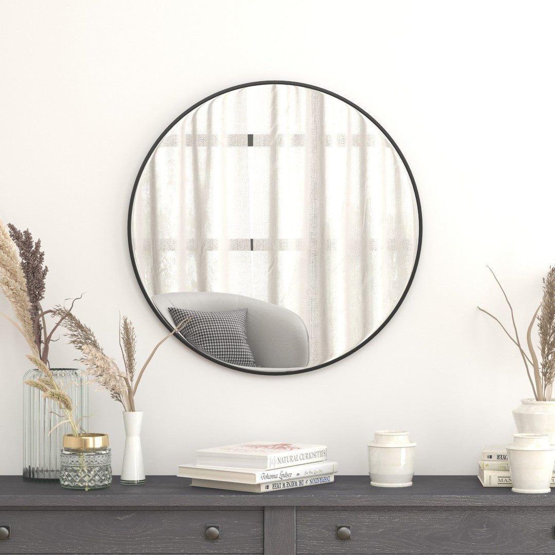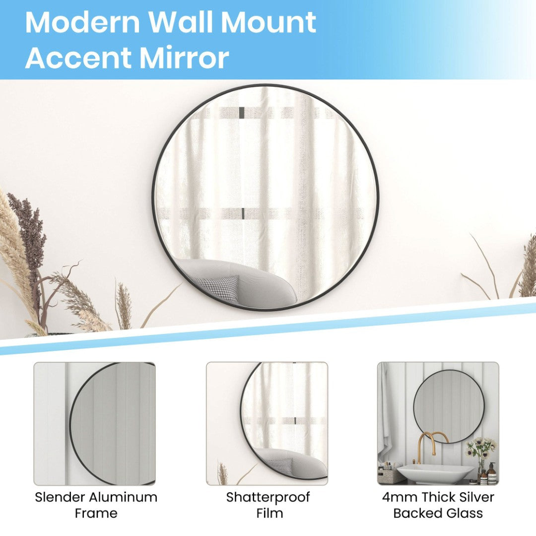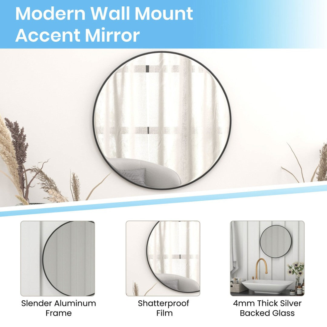 Brighten and enlarge any room with a timeless round wall mirror that blends classic elegance and practical safety. The slim oxidized gold aluminum frame offers a minimalist, aged look that complements bathrooms, vanities, entryways, dining rooms, and living spaces, while the high-reflectivity glass and shatterproof backing ensure a clear image and peace of mind in homes with children or pets.