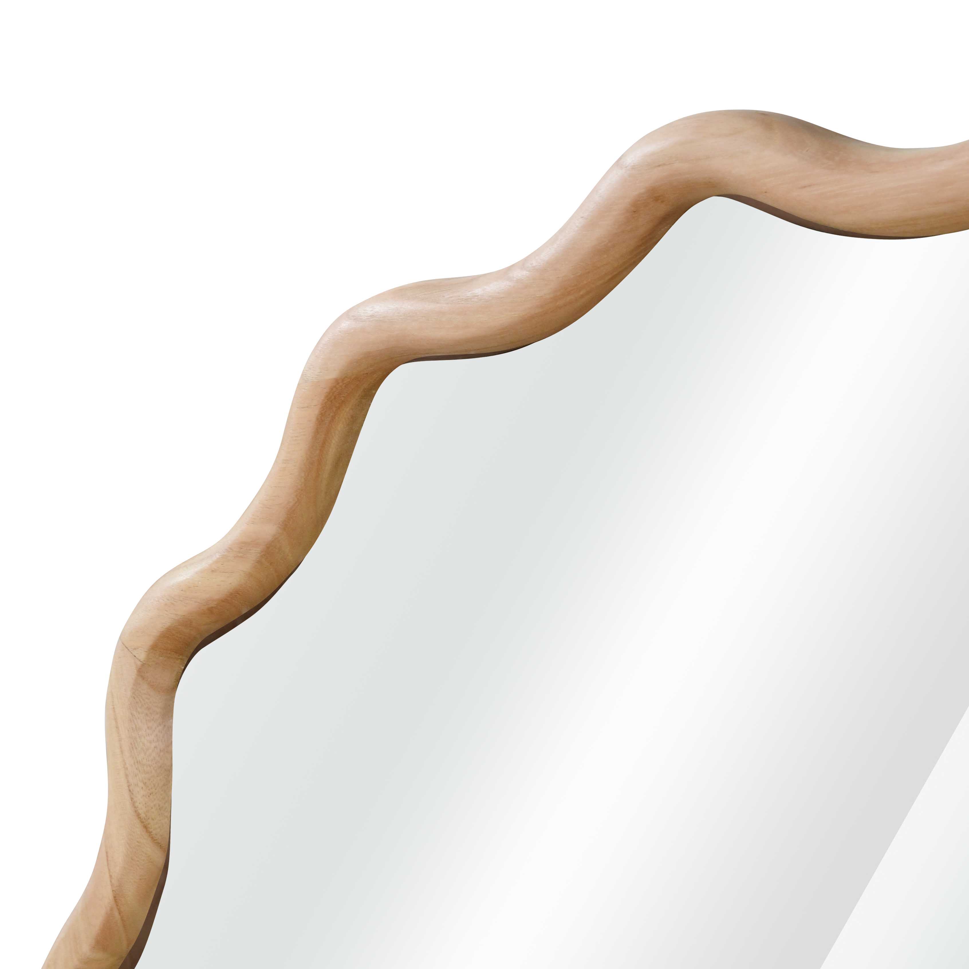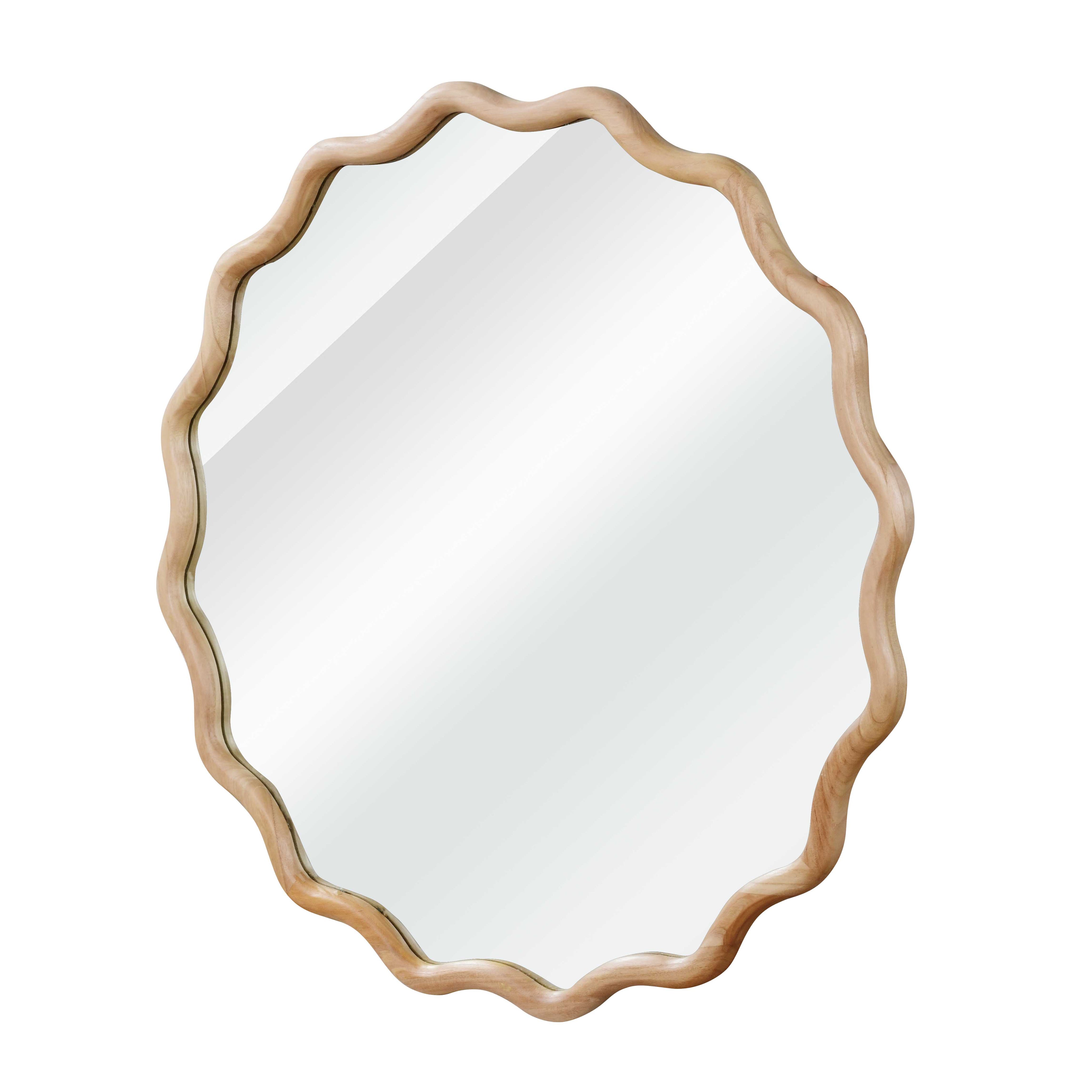 Bring organic warmth and artistic flair to any room with this wavy round solid wood framed mirror. Its irregular, sculpted edge and natural wood finish create a striking focal point that blends rustic charm with modern design—perfect for bedrooms, bathrooms, entryways, living rooms, and more. Crafted for everyday use, the mirror pairs high-definition glass with a durable solid wood frame for accurate reflection and long-lasting appeal.