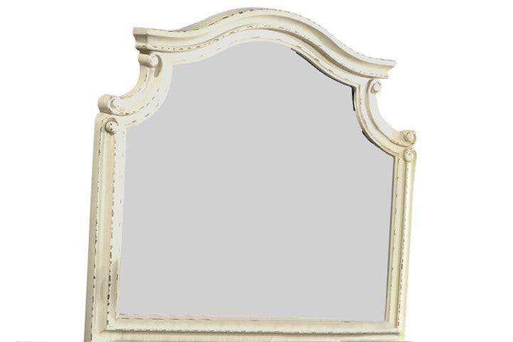 Add a touch of timeless elegance to your bedroom with this Noble traditional-style mirror. Carefully crafted from a blend of solid and manufactured wood and finished in antique beige, its unique silhouette and classic detailing elevate both modern and traditional interiors. Designed to pair seamlessly with a matching dresser, this mirror becomes a focal point that enhances the room’s cohesion and refined atmosphere.