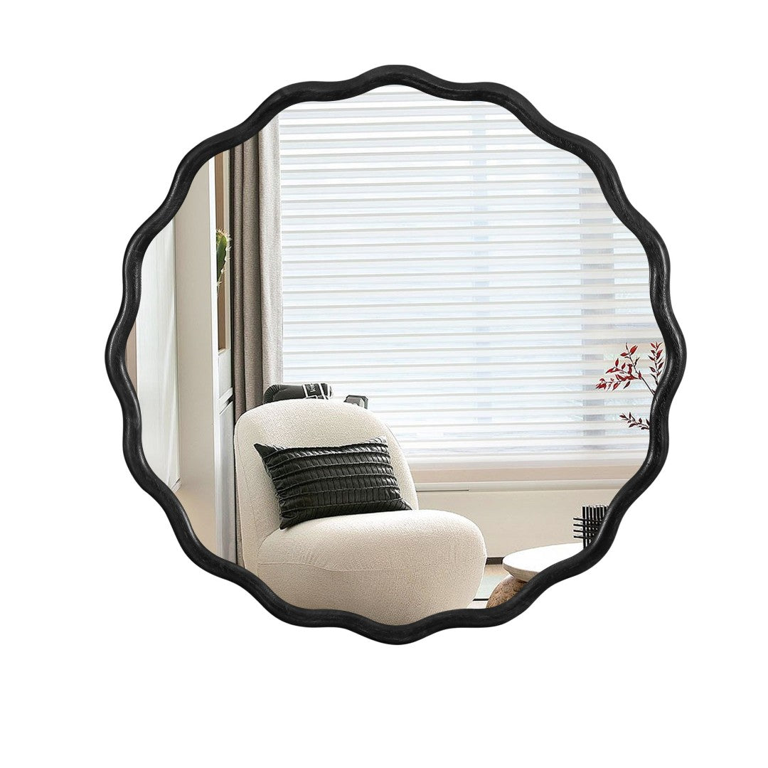 Elevate your room with a sculptural, solid-wood framed mirror that blends functional clarity with modern artful design. The wave-shaped wooden border adds visual movement and warmth while the high-definition glass delivers a sharp, true reflection—perfect for brightening spaces, enlarging sightlines, and adding a refined focal point to any room.