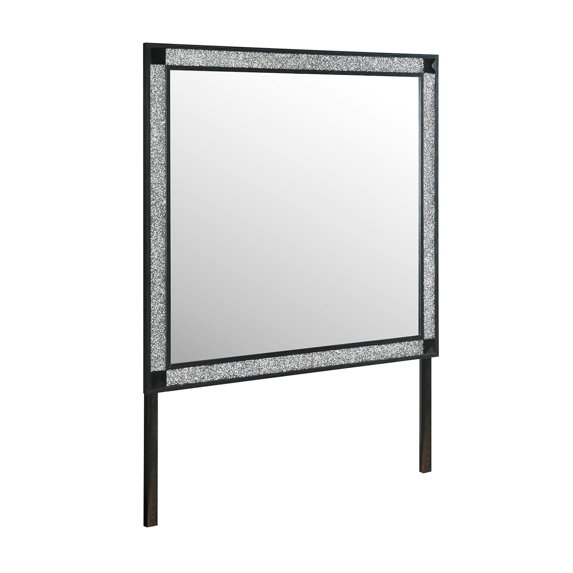 Elevate your bedroom with the Soulmarie Charcoal Mirror — a contemporary, large-scale accent that blends substantial presence with refined detailing. Its sleek charcoal wood frame and subtle glitter accents create a modern focal point while the sturdy construction and dresser-connect capability make it both stylish and practical for everyday use.