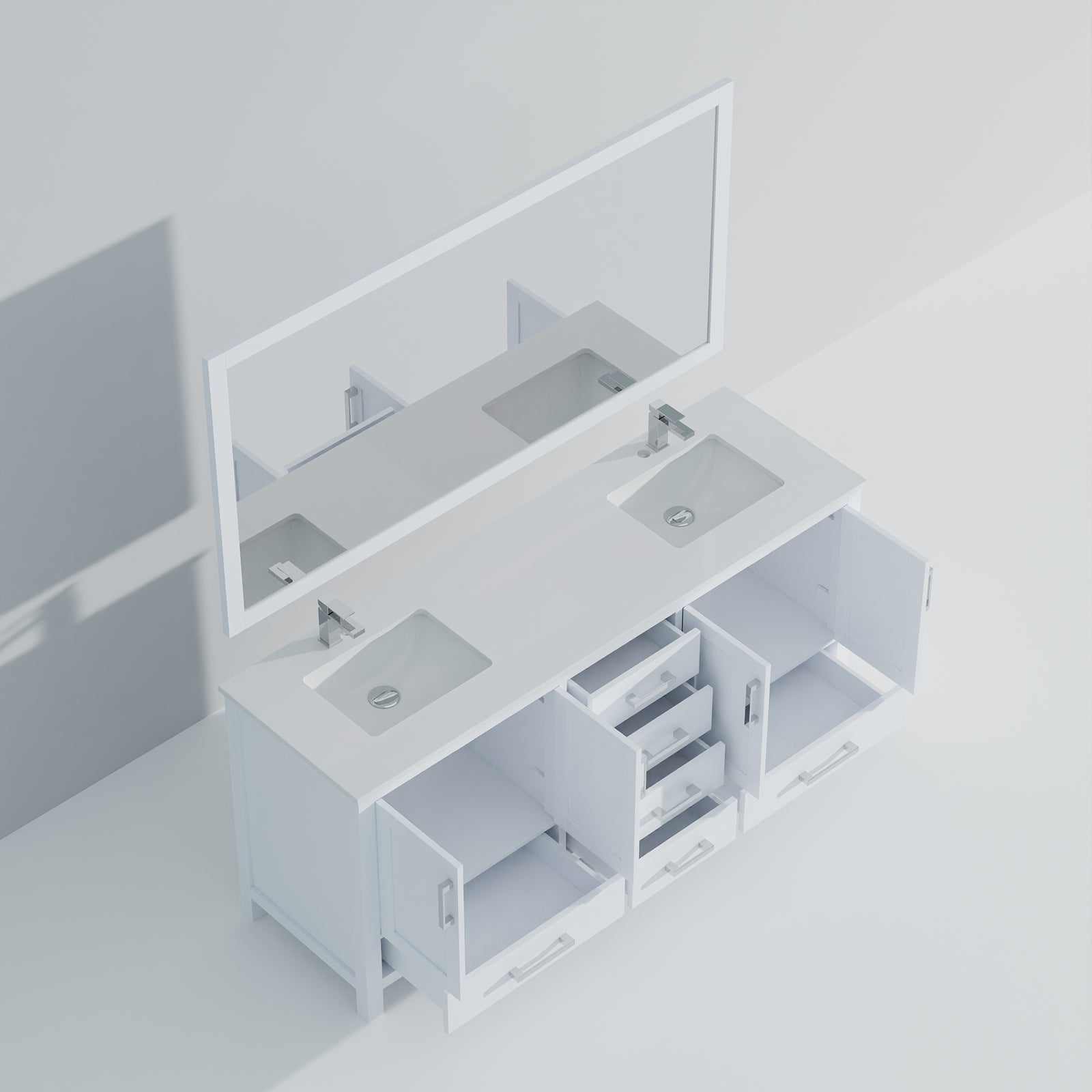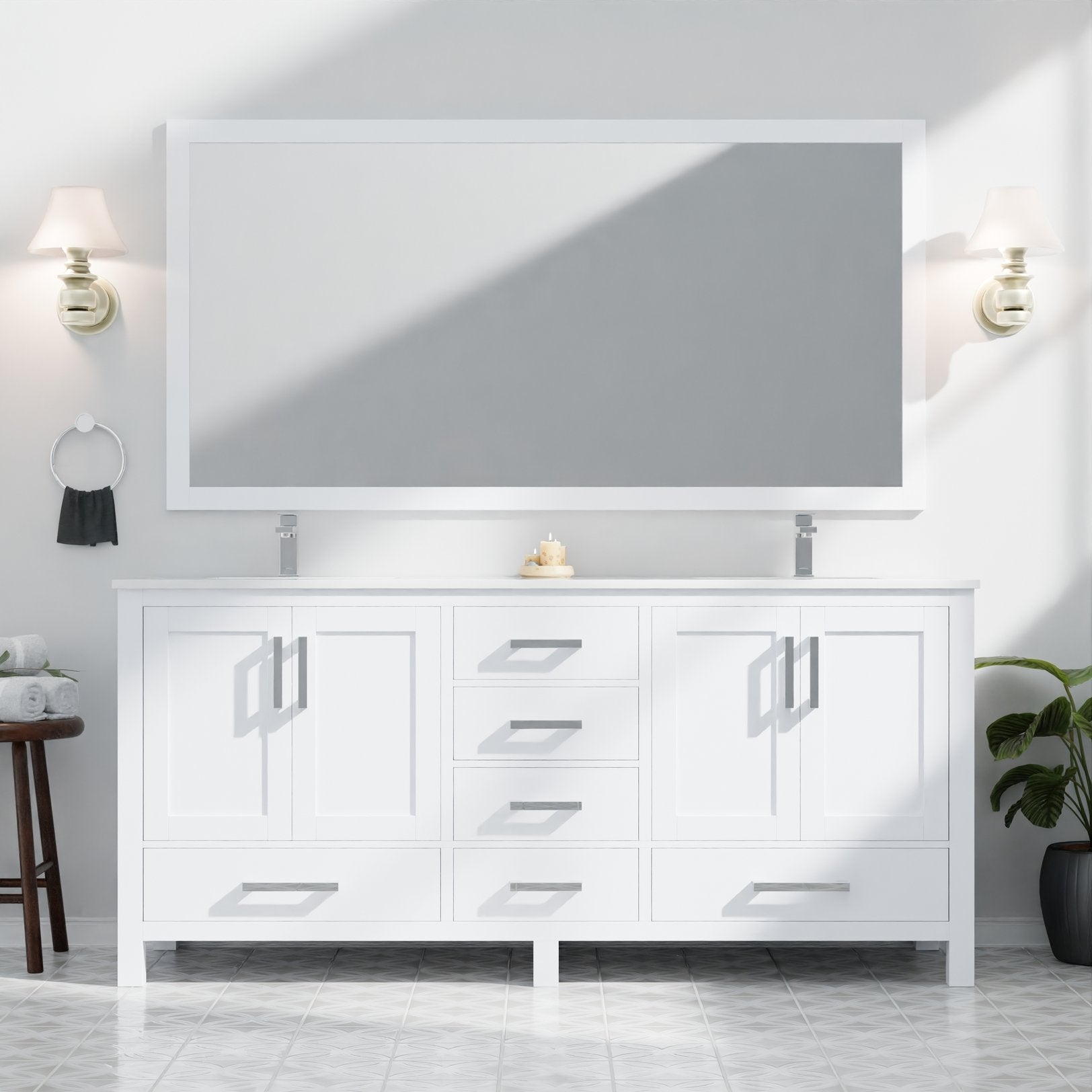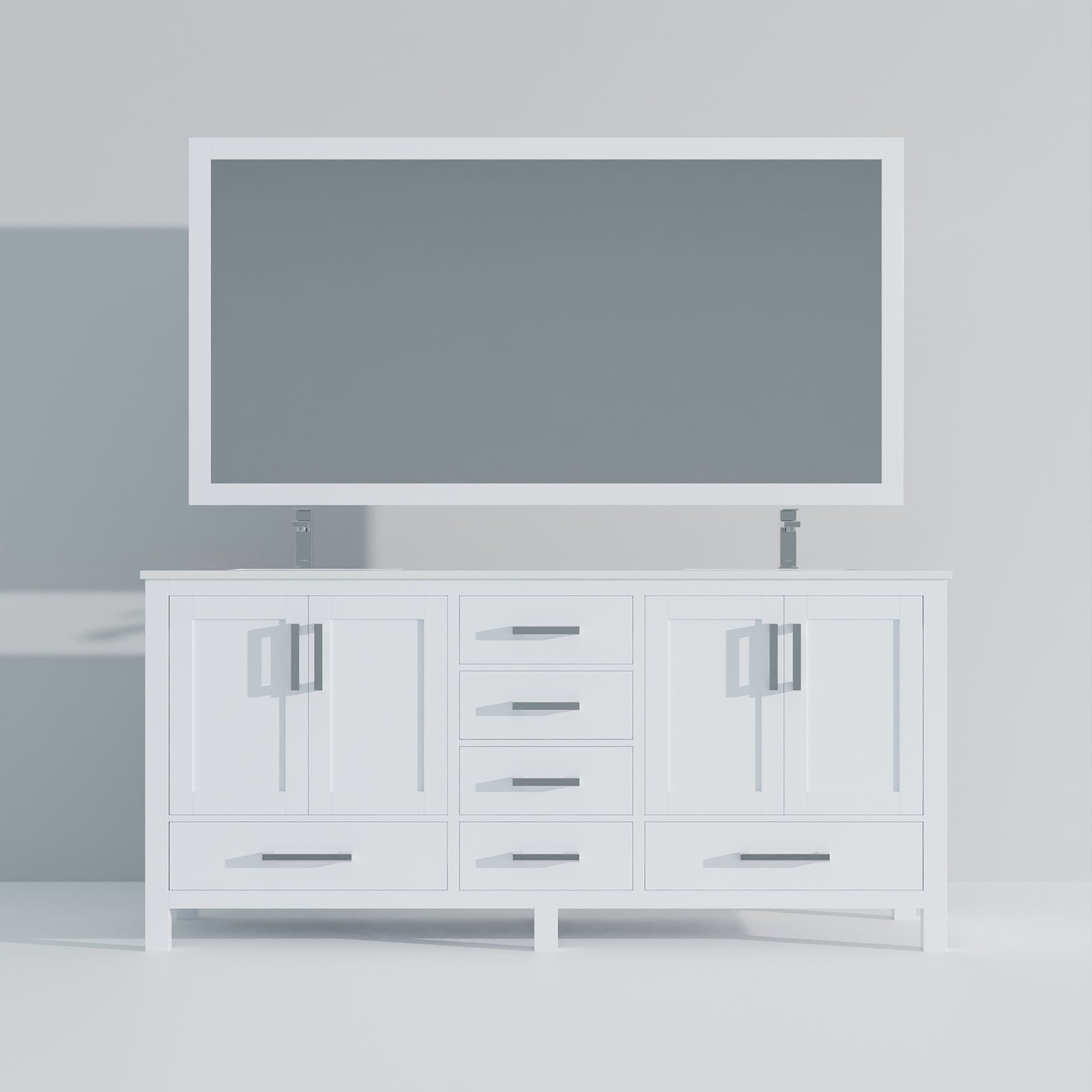 - Mirror: Included large mirror measuring 70 in. W x 32 in. H to complement the vanity and enhance light and space.