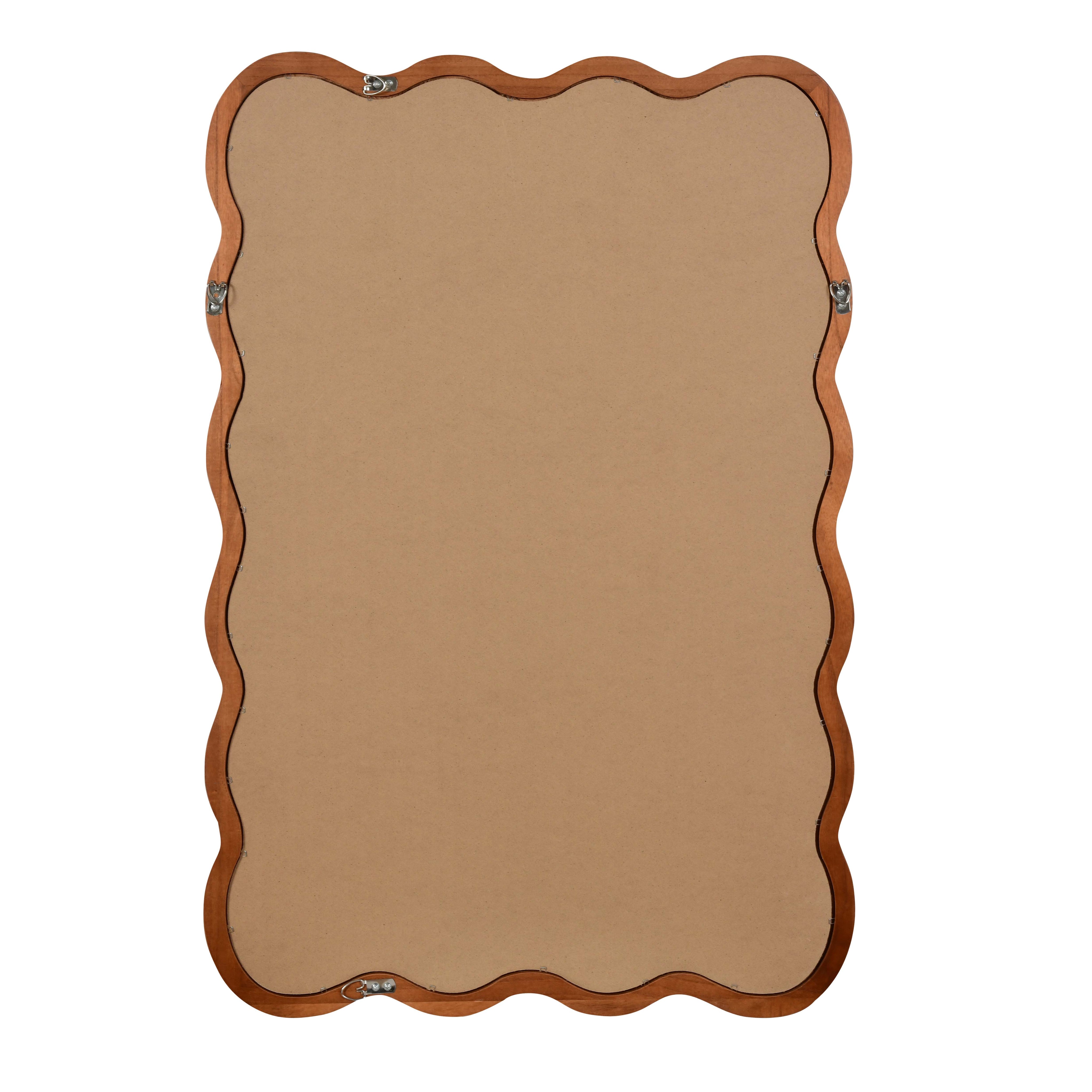 Give your space an artistic focal point with this warm yellowish-brown solid wood framed mirror. Its wavy rectangular silhouette and natural wood grain bring a handcrafted, rustic-modern feel that suits bedrooms, bathrooms, entryways, and living areas. The high-definition tempered glass delivers a clear, distortion-free reflection while the sturdy frame and versatile mounting options make it both beautiful and practical.