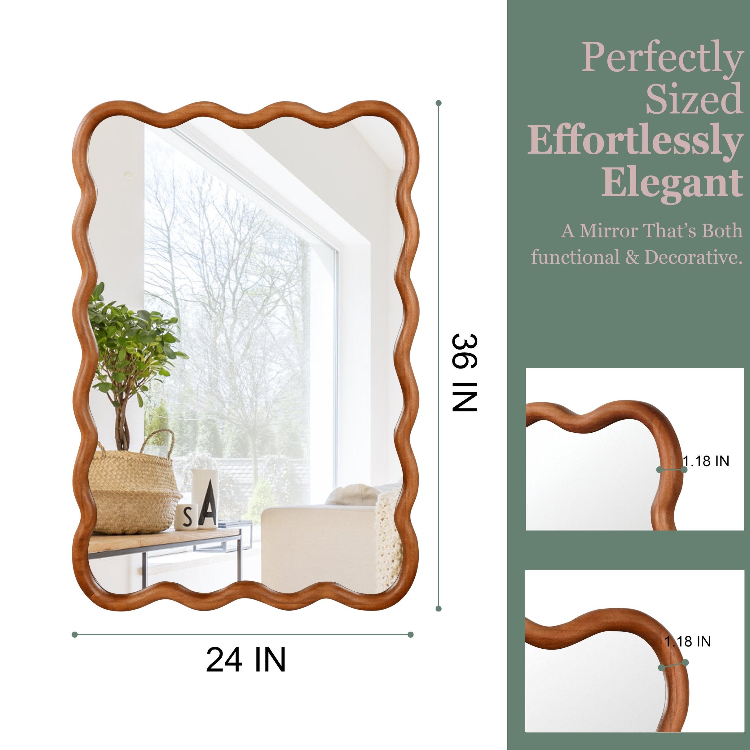 - Apply Any Space - Solid wood frame mirrors have various installation methods. They can be installed vertically, horizontally or against the wall, it can be used in a variety of scenarios, suitable for bathroom upgrades, hotels, vanity, farmhouse, bedroom, living room, dining room, entryway, fireplace, corner.