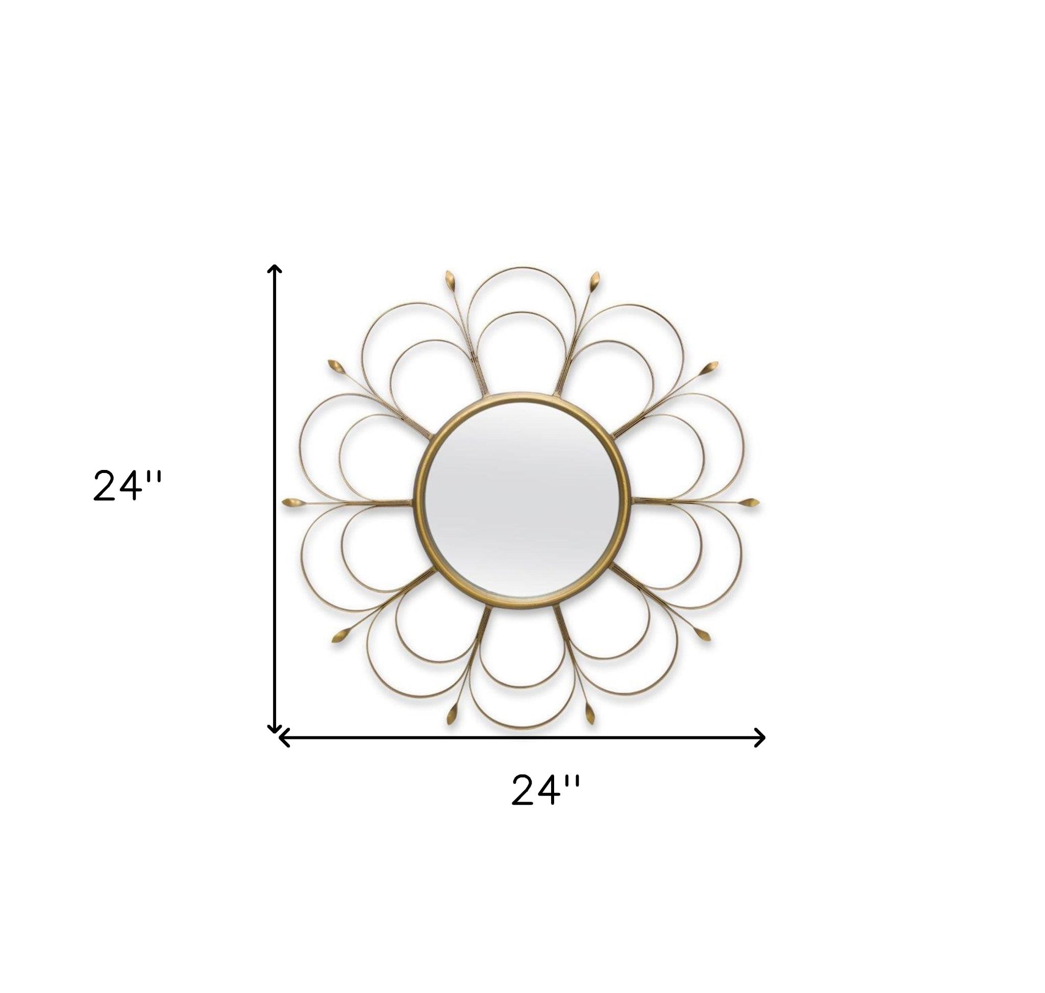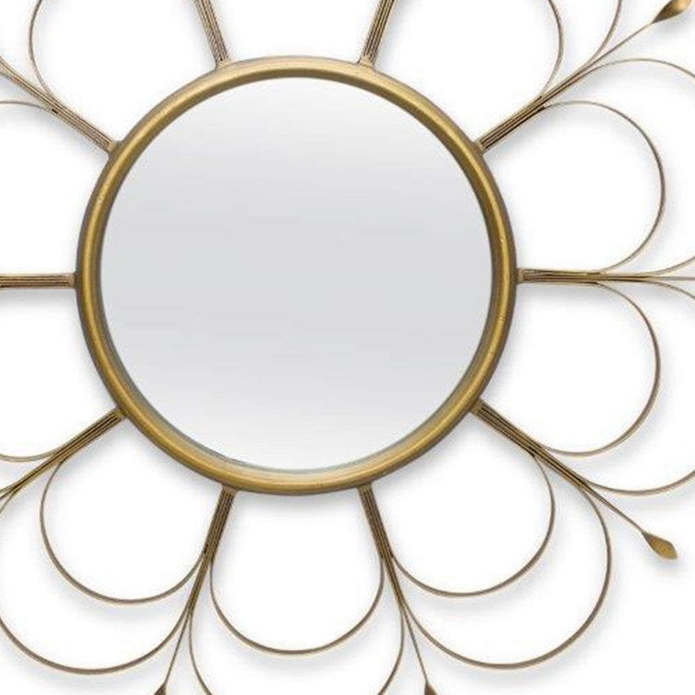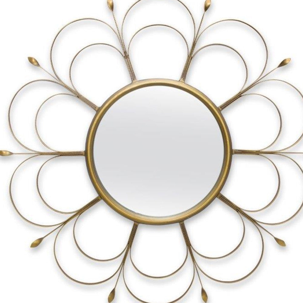 - Wall-mounted mirror with a stylish geometric frame design in gold finish.