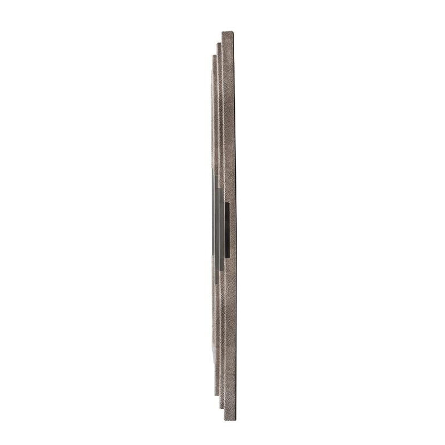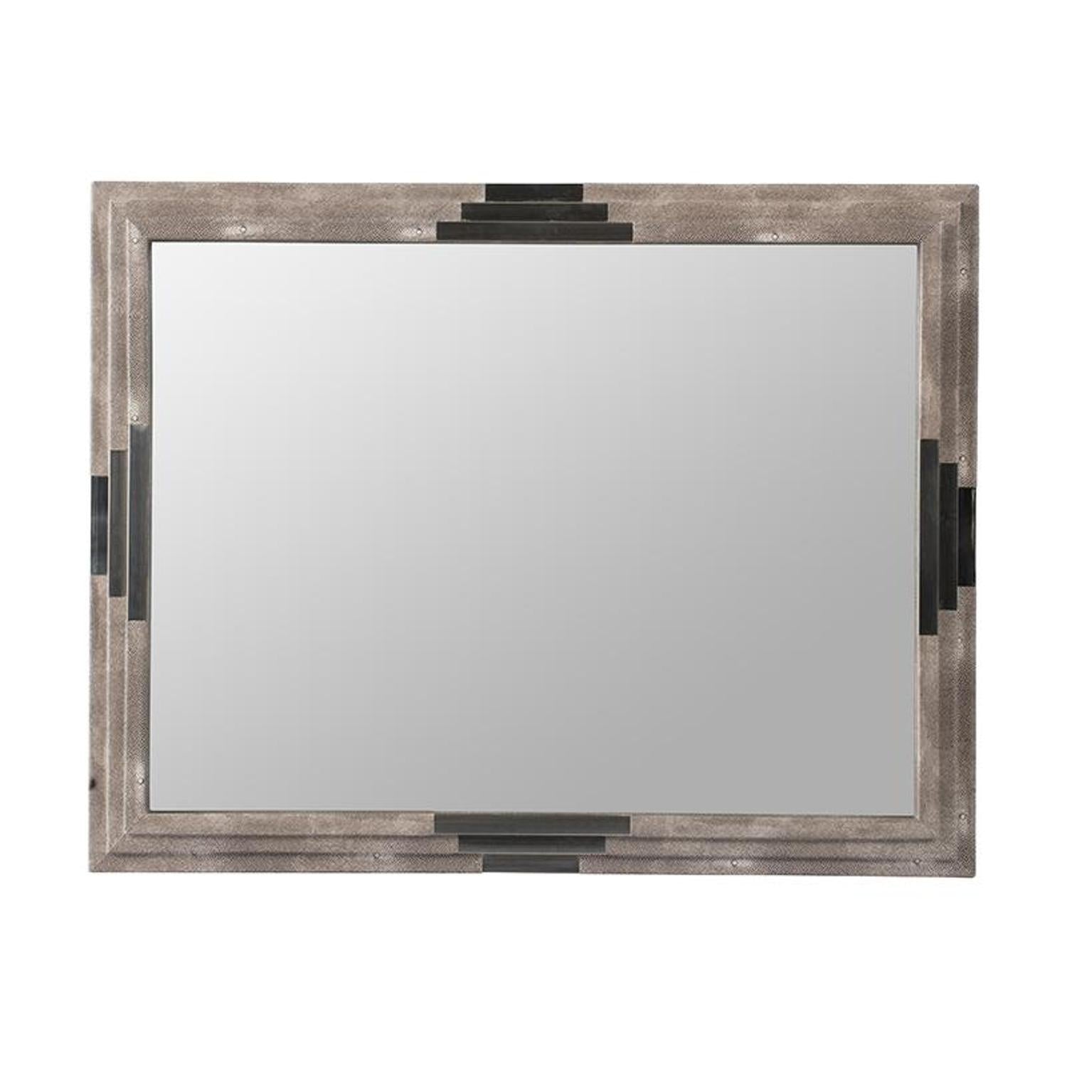 - Wall mounted mirror with a sleek gray polyurethane frame.