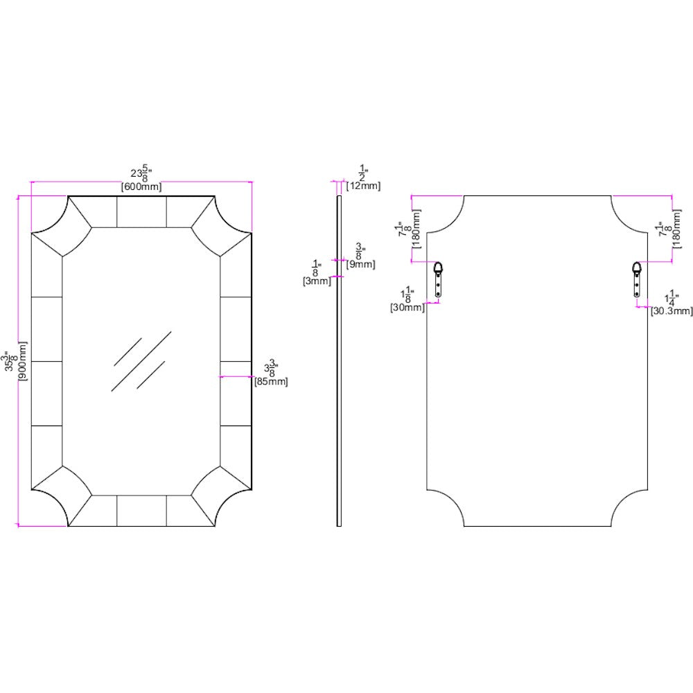 - beveled glass edges have been cut at an angle to create a framed look and add dimension. this mirror is sure to be the focal point of the room