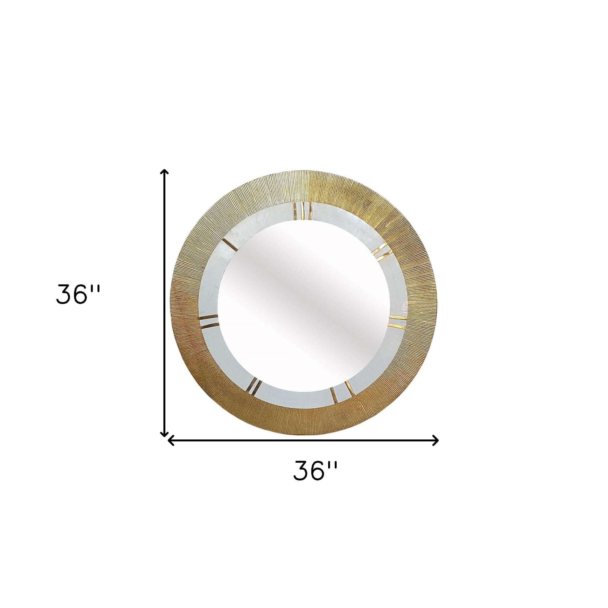 - Features an outer surround of ruffled texture gold and then an inner ring of white decoration around the mirror.