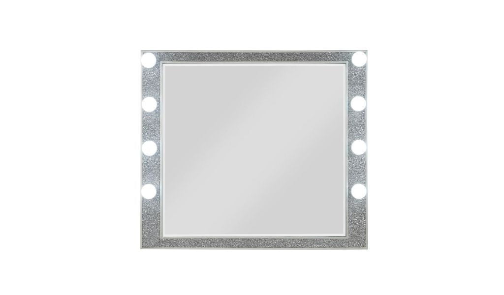 - Framed mirror with a champagne finish.