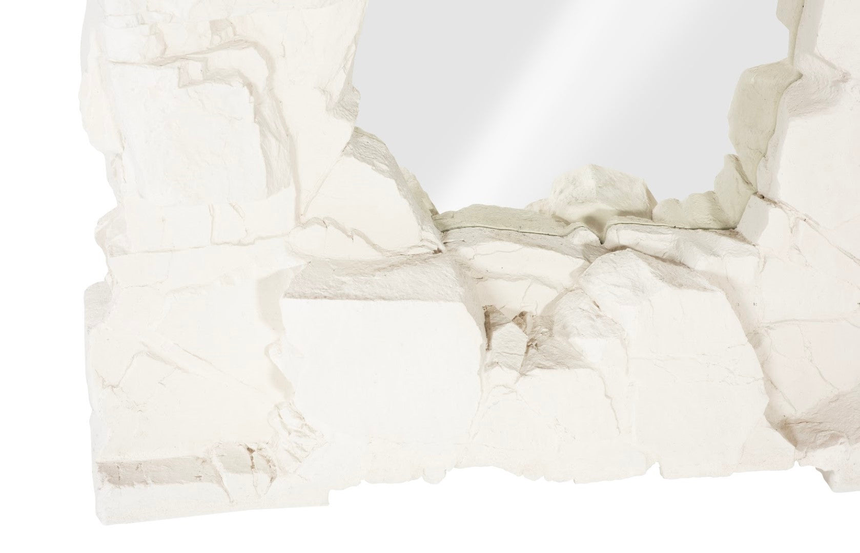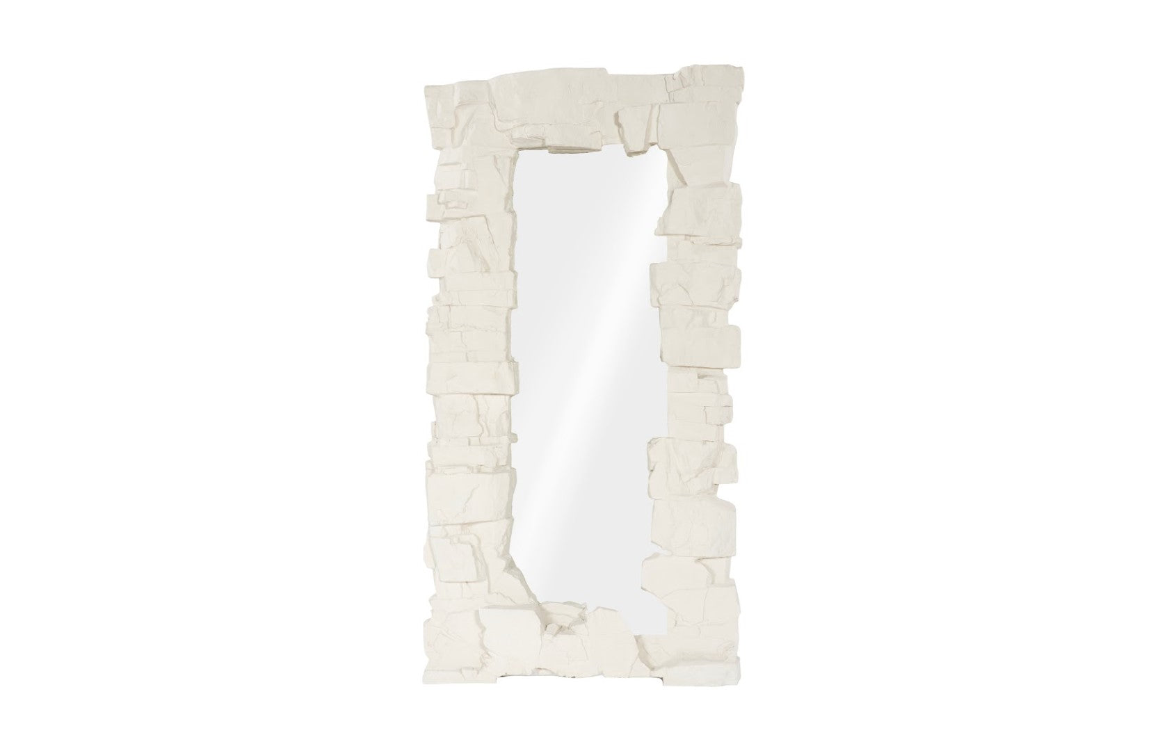 - Our White Stone finish is crafted using a unique blend of crushed stone and resin, backed by a durable fiberglass structure. As a result of this artisanal process, hairline cracks may naturally appear in the surface. These fine lines are an expected characteristic of the material and do not compromise the strength, stability, or structural integrity of the piece. They are not considered defects or damage. Each item reflects the handcrafted nature of the White Stone finish, adding to its individual charm and timeless appeal.