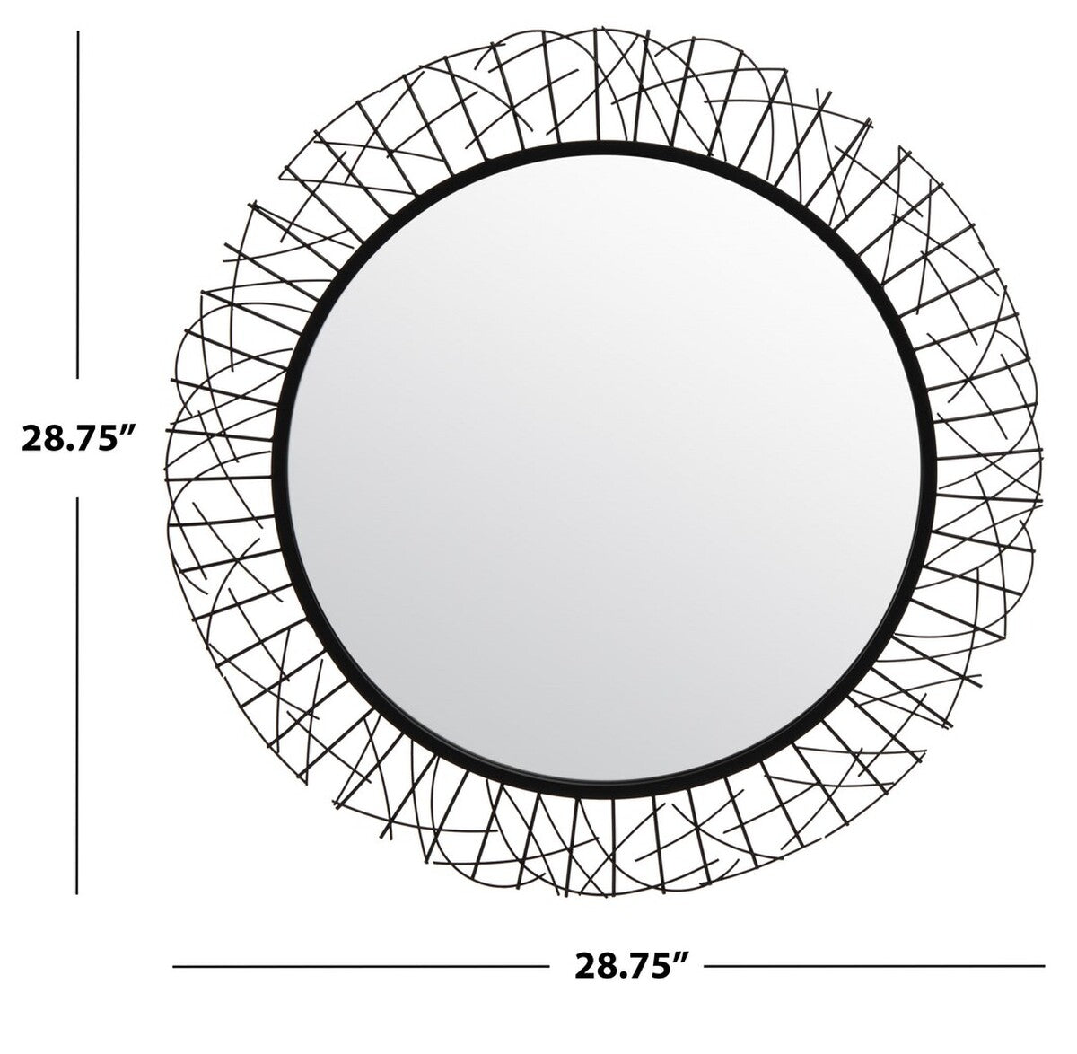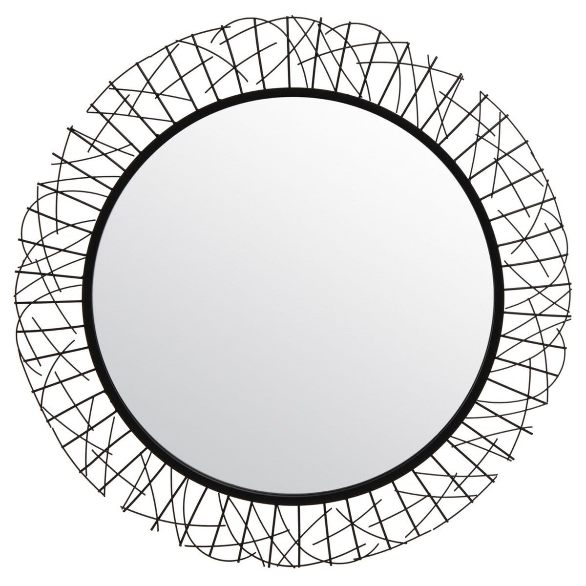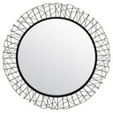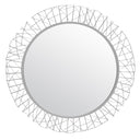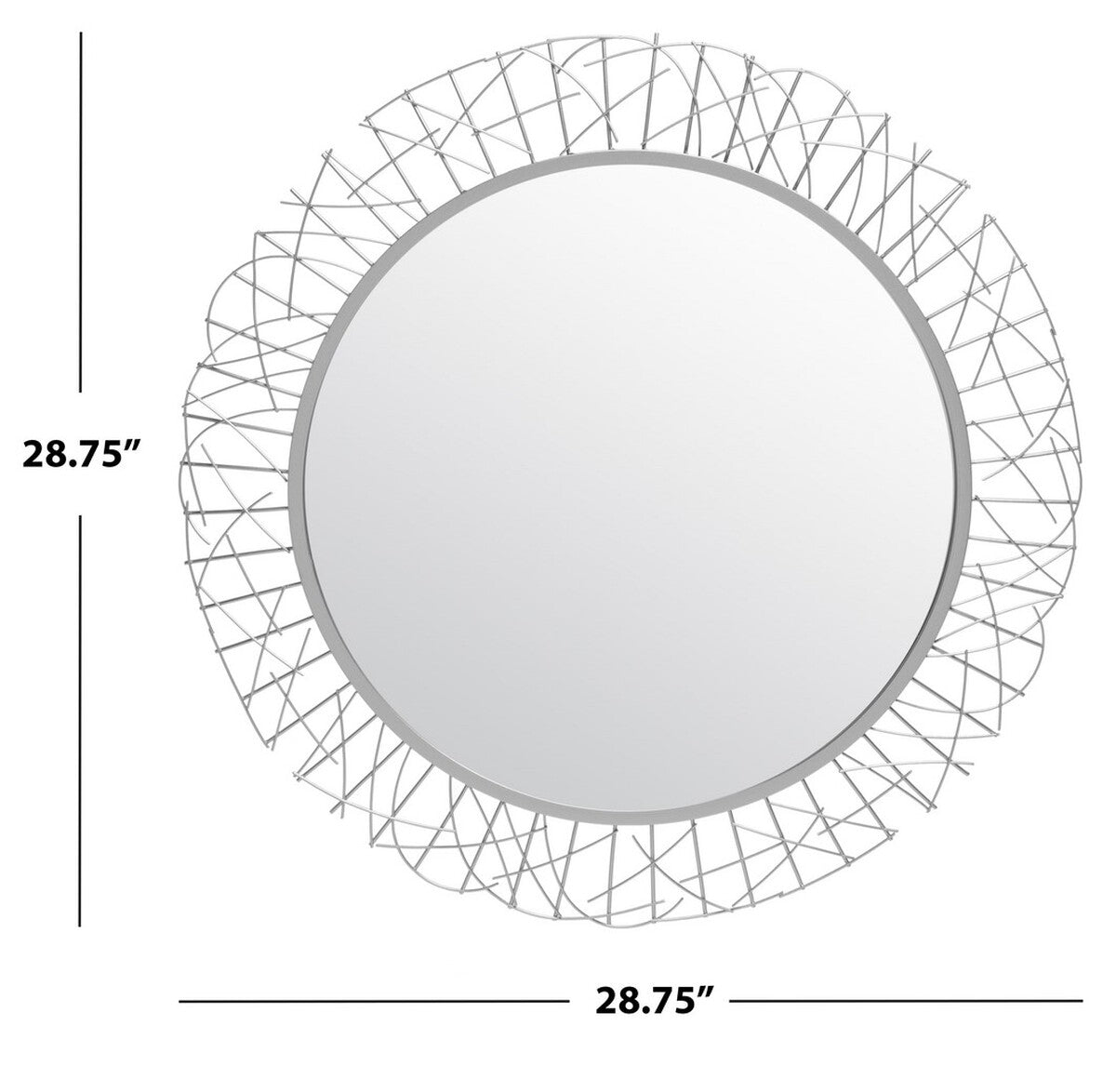 Designed to be a work of art, this contemporary mirror is an instant focal point in the living room or entryway. Crafted with the durability of iron, its silver finish illuminates an intricate geometric cut-out pattern that frames its circular mirror.