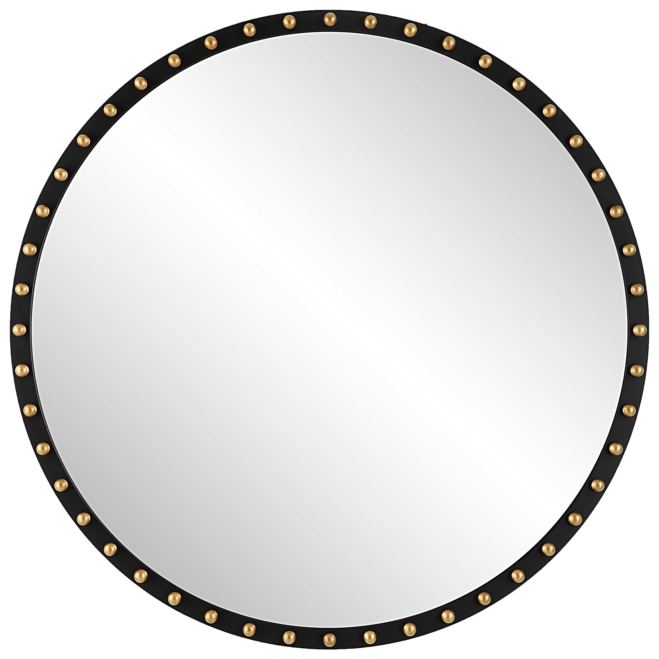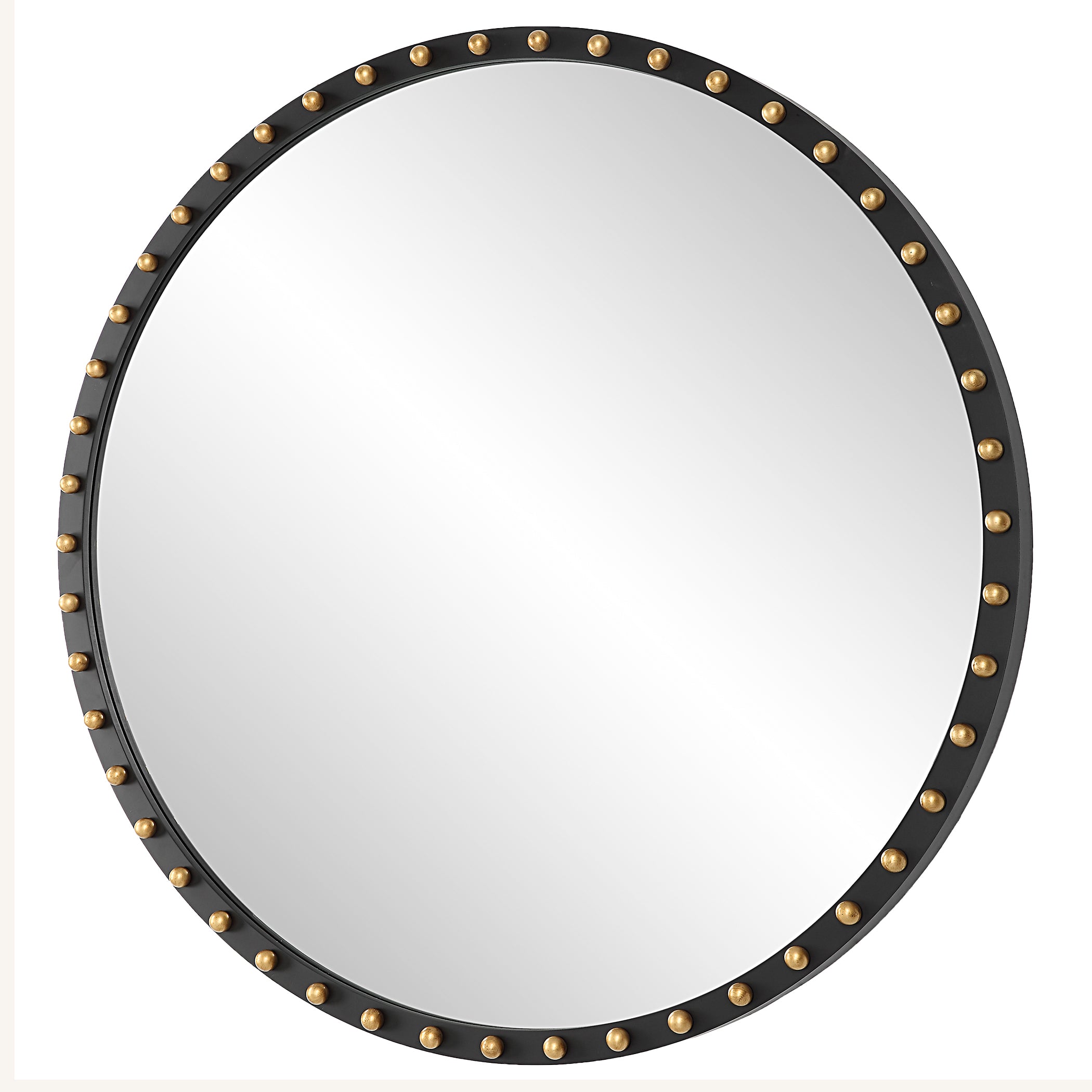 - Finish/Frame Description: This Oversized Round Mirror Is Made From Solid Beech Wood Finished In A Matte Black, Adorned With Lightly Distressed Gold Leaf Wood Ball Details.