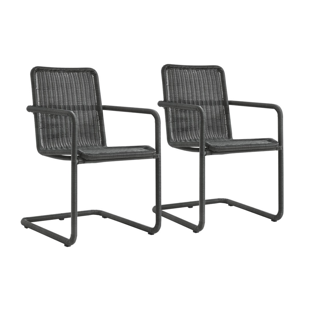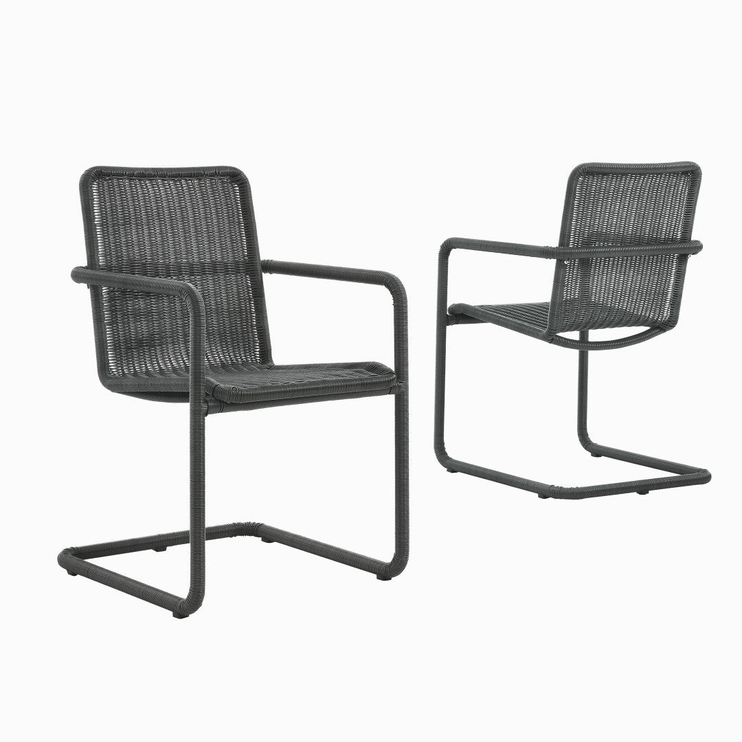 Elevate your outdoor dining area with the Abacus Wicker Outdoor Dining Chairs set of 2 — a blend of modern cantilever styling and all-weather durability. These chairs offer a comfortable seating experience with a continuous-flow steel frame wrapped in UV-resistant synthetic wicker, delivering a natural, textured look that stands up to sun and seasonal exposure. Thoughtful details like plastic foot pads protect flooring while the 300 lb weight capacity gives reliable performance for everyday use or entertaining.