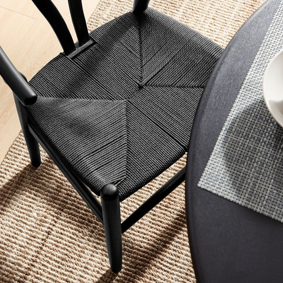 - Seat: Handwoven paper rope seat offering breathable support and a tactile natural texture