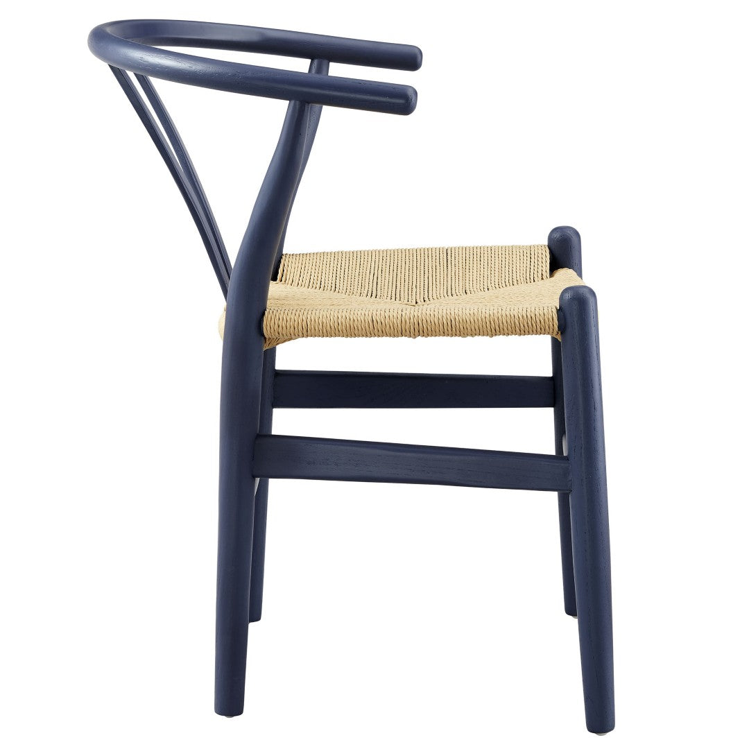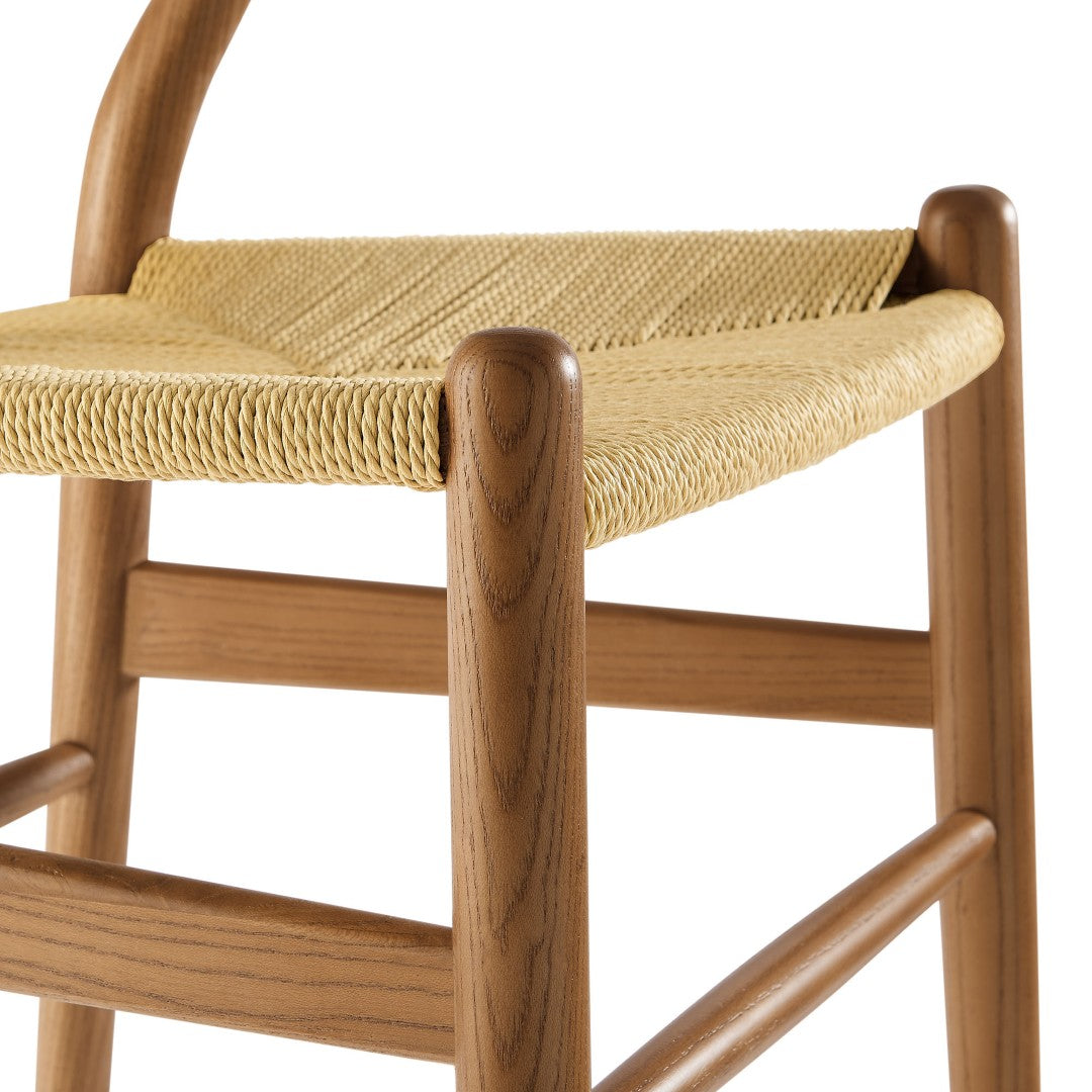 Bring mid-century charm and rustic craftsmanship to your dining or café space with this handcrafted Amish-style wood rope side chair. Its sculpted elm frame, distinctive V-cut backrest, and woven paper rope seat blend minimalist design with warm, natural materials for comfortable, long-lasting seating that arrives fully assembled.