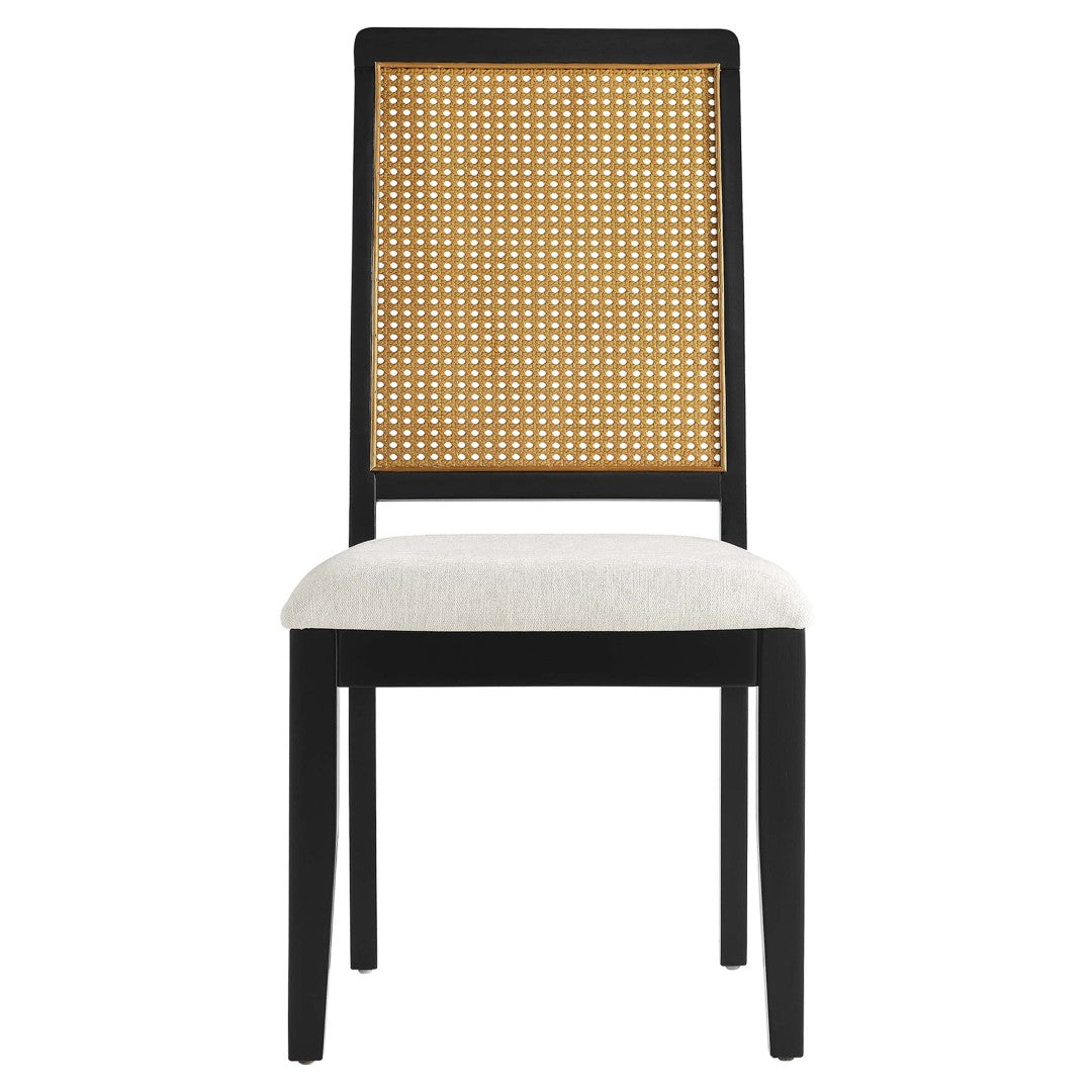 Elevate your dining space with the Arlo Faux Rattan and Wood Dining Side Chairs — a harmonious blend of farmhouse warmth and modern clean lines. Expertly crafted details like faux rattan cane backrests and heathered weave upholstery create a relaxed yet refined look, while dense foam seats and a sturdy solid wood frame deliver lasting comfort and support for everyday meals or entertaining.