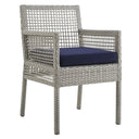 Create a welcoming outdoor dining space with this stylish and durable wicker rattan armchair. Built for comfort and everyday alfresco use, the chair features a weather-resistant woven exterior, a sturdy powder-coated aluminum frame, and a machine-washable, fade-resistant cushion—making it ideal for patios, poolside seating, and backyard gatherings.