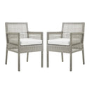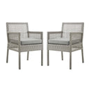 Invite friends and family to linger longer with the Aura Outdoor Patio Dining Armchair — a refined blend of weather-ready durability and contemporary wicker style. Thoughtfully designed for comfort and easy maintenance, this pair of armchairs adds a polished, versatile look to patios, decks, poolside lounges and outdoor dining areas while resisting sun, rain and everyday wear.