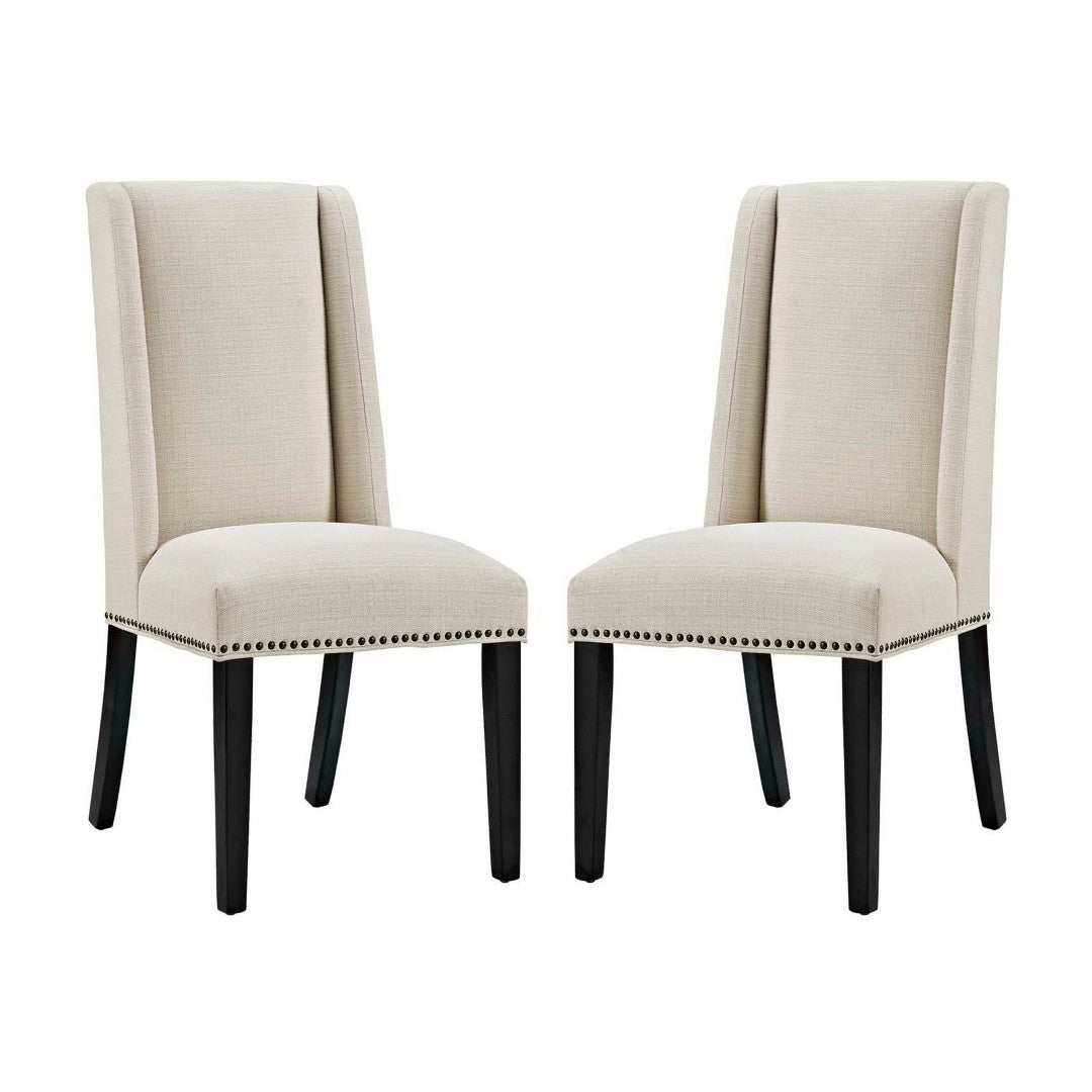 - Elegant Modern Dining Side Chair Dense Foam Padding for Comfort Polished Nailhead Trim Solid Rubberwood Legs Non-Marking Foot Caps Fine Polyester Fabric Upholstery Assembly Required