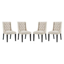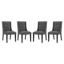 Elevate your dining room with the Baronet Fabric Dining Chair — a refined set of four chairs that blends classic tufted styling with modern comfort. Each chair features plush padding, tailored fabric upholstery, and a sturdy solid wood frame, creating an elegant focal point that’s built for everyday use and special occasions alike. Thoughtful details like curved silhouettes, button tufting, and non-marking foot glides ensure lasting style and floor protection.
