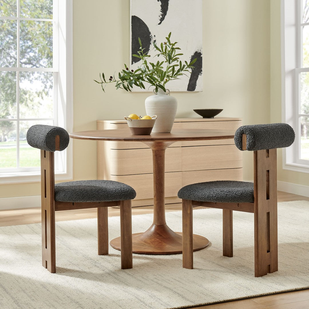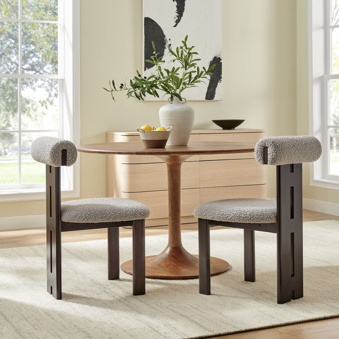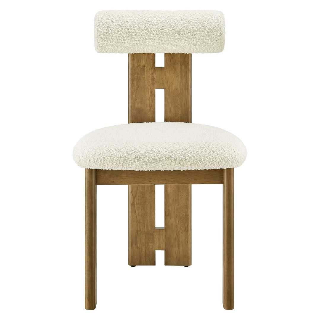 Elevate your dining or living space with a refined blend of retro-modern style and everyday comfort. These boucle-upholstered dining chairs pair sculptural rubberwood frames with plush padded seats and a distinctive three-legged silhouette for a look that’s both artistic and approachable. Ideal for dining rooms, kitchens, or as accent seating, they deliver cozy ergonomics and durable construction without sacrificing aesthetic impact.