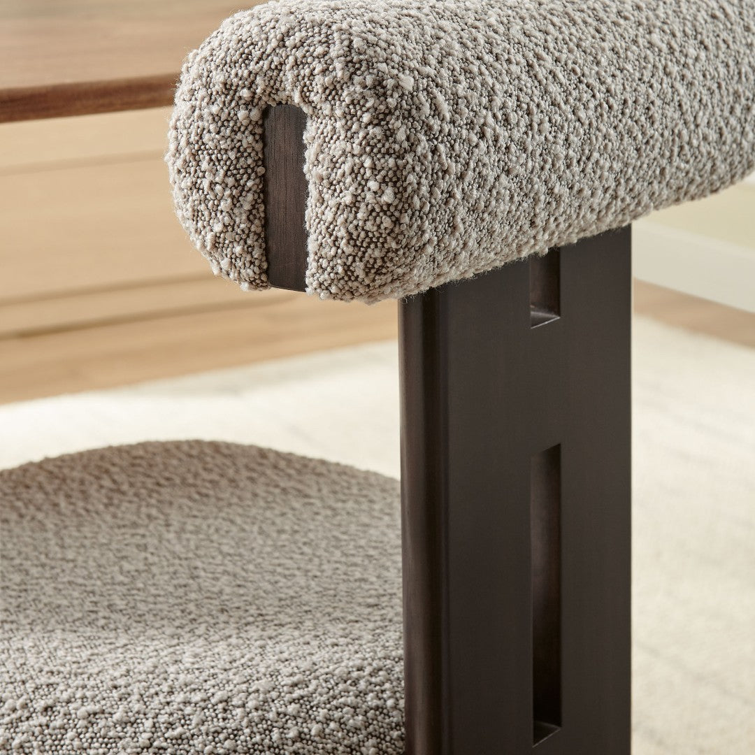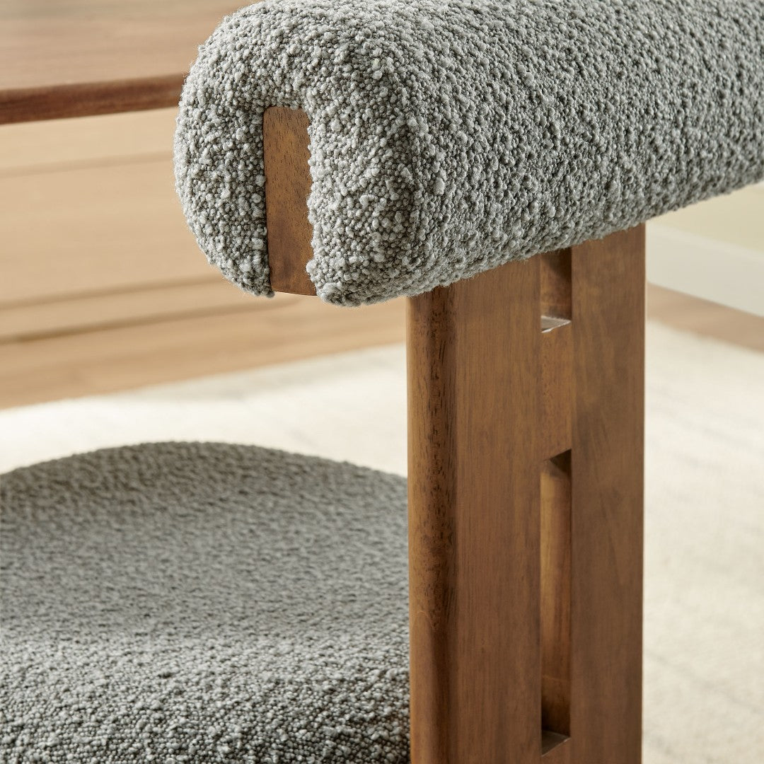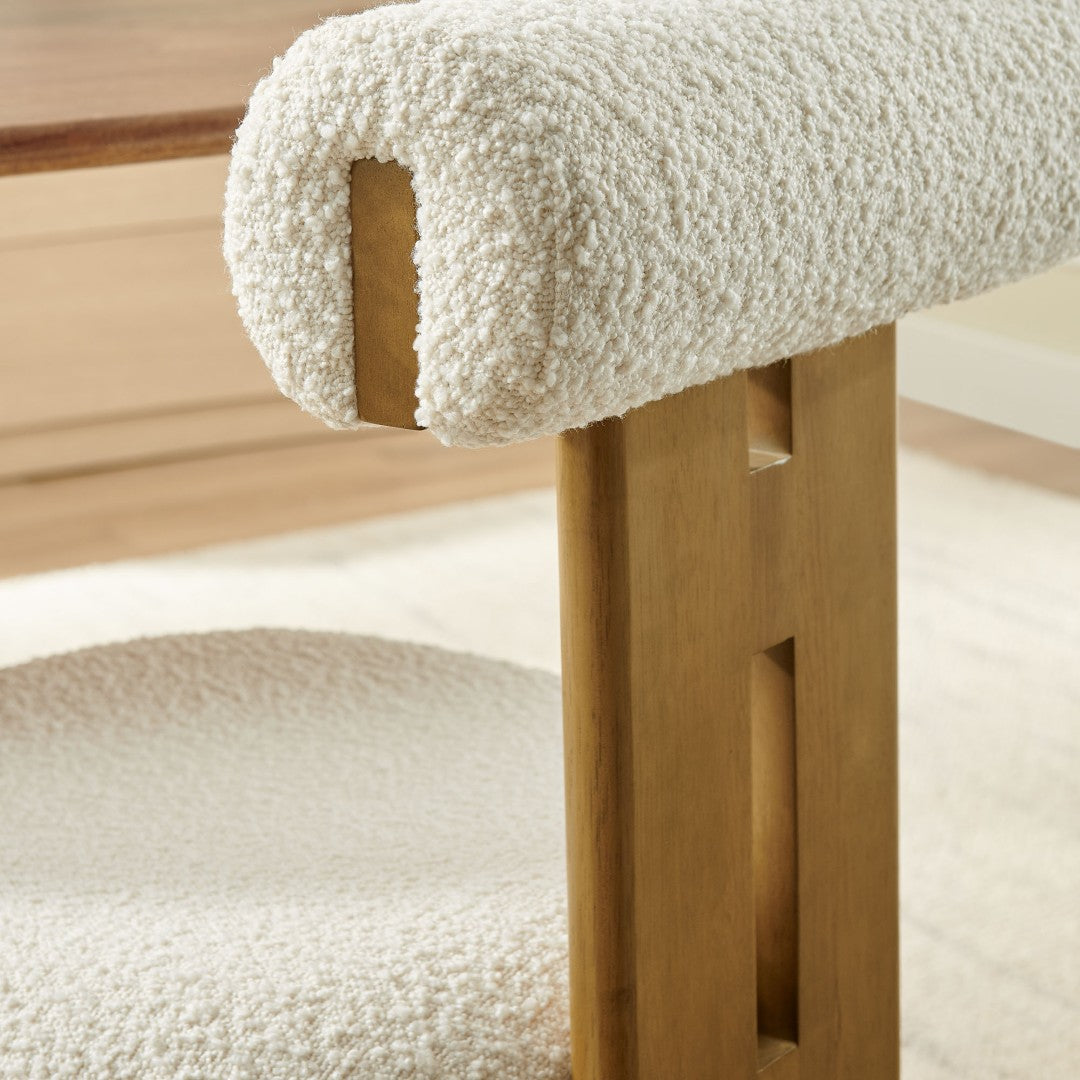 - Comfortable upholstery: Soft, textured boucle fabric wraps both the rolled backrest and padded seat for a cozy, tactile finish.