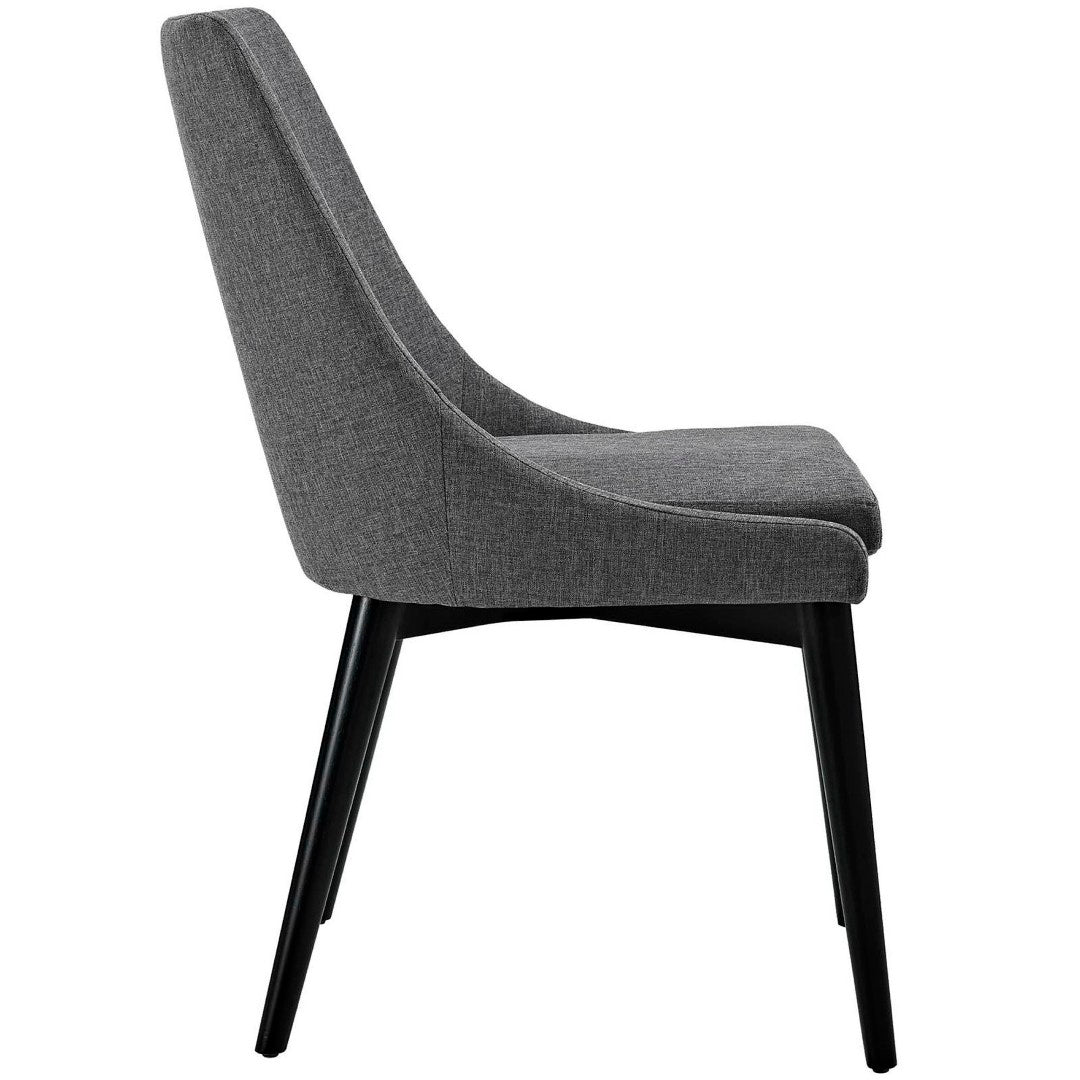 Elevate your dining space with the Viscount Fabric Dining Chair — a sleek, minimalist chair that blends contemporary form with everyday comfort. Densely padded and wrapped in durable polyester fabric, the Viscount delivers a refined silhouette and supportive seating ideal for dining rooms, kitchens, or stylish commercial settings. Tapered black wood legs provide a grounded contrast, while the compact footprint makes it versatile for both intimate tables and larger arrangements.