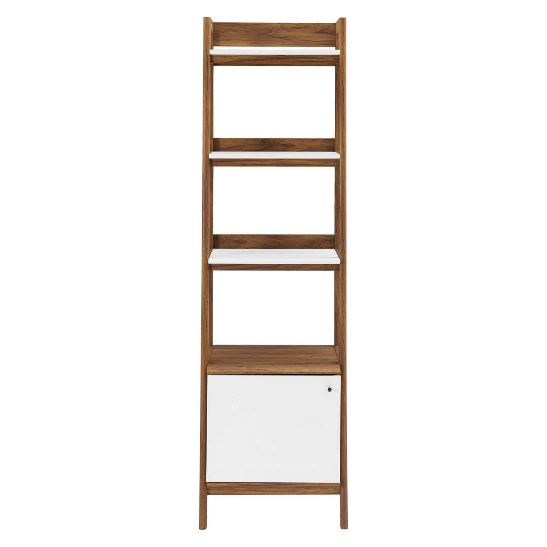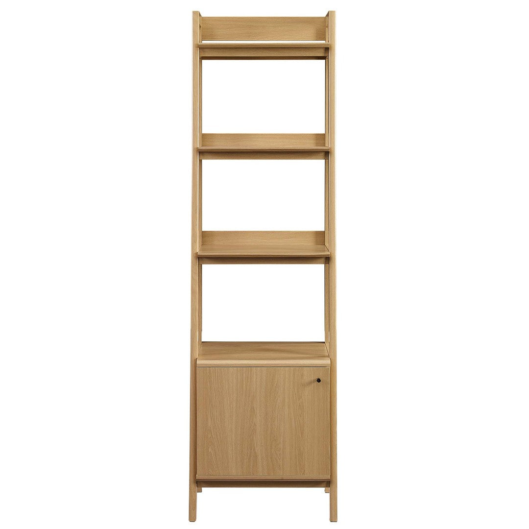 Bring modern organization and warm, natural texture to your living room, bedroom, or home office with this slim, tiered bookshelf. Its clean lines and wood-grain finish create a striking contrast with the open shelving, while a hidden bottom compartment keeps clutter out of sight — ideal for books, decor, and everyday essentials.