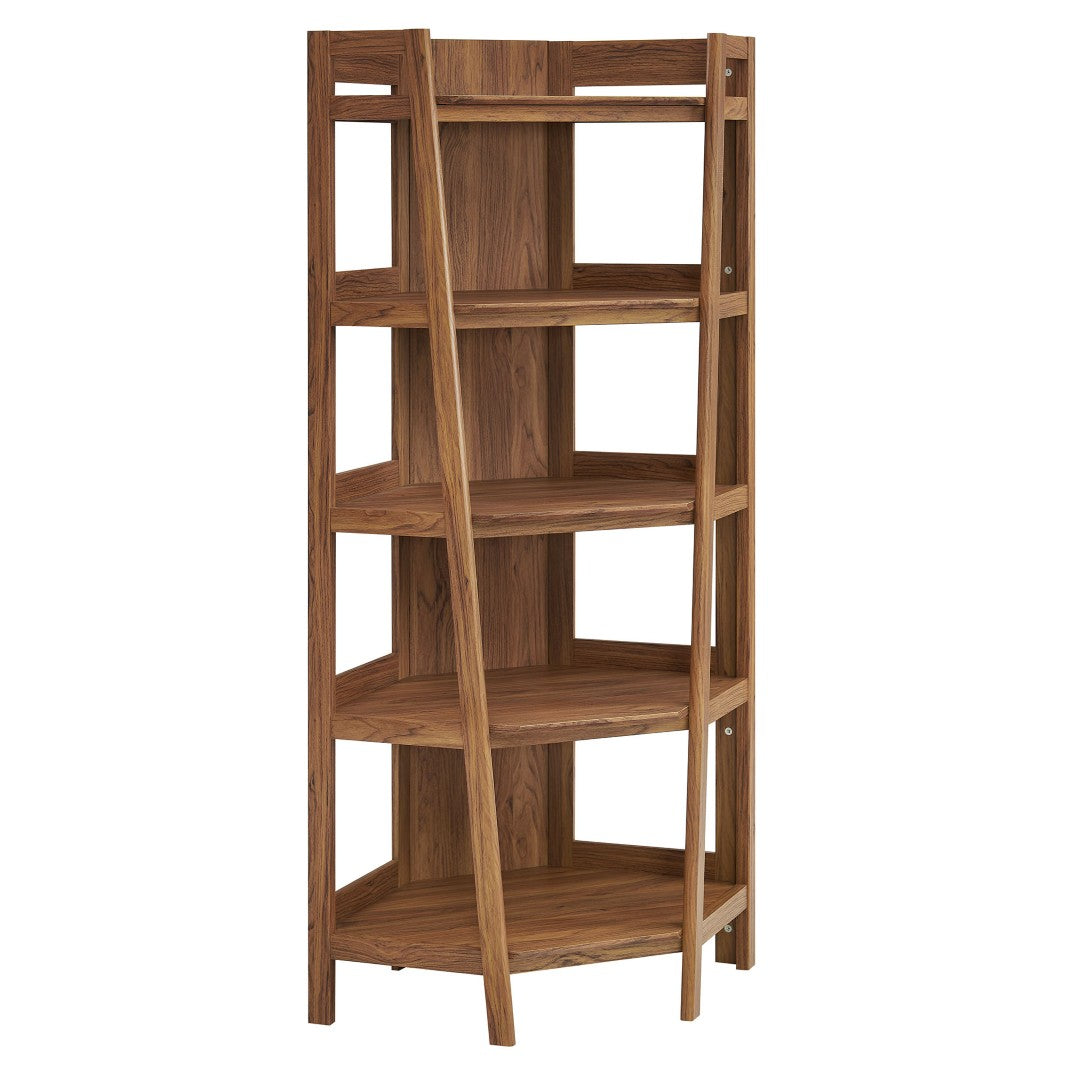 Bring organization and style to an unused corner with a sleek, modern tower that showcases books, plants and decorative accents without taking up valuable floor space. The tiered Bixby corner bookshelf combines a laminated wood-grain finish with open, window-style panels for an airy, contemporary look that complements living rooms, bedrooms, or home offices. Durable construction and thoughtful shelving make it as functional as it is attractive.
