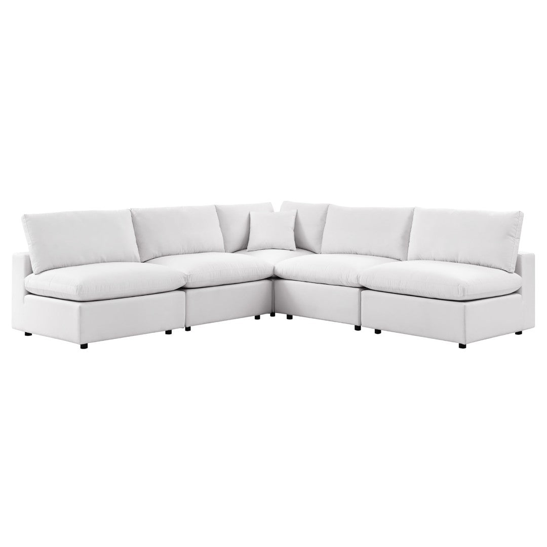 Create an inviting outdoor lounge area with the Commix 5-Piece sectional—designed for relaxed entertaining and comfortable everyday use. Its clean lines and generous proportions pair with durable, weather-ready materials so you can enjoy alfresco gatherings or quiet afternoons with confidence. Plush, water- and UV-resistant cushions sit on an all-weather powder-coated aluminum frame, offering lasting comfort and low-maintenance performance for patios, porches, and poolside settings.