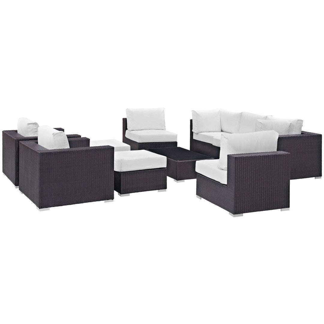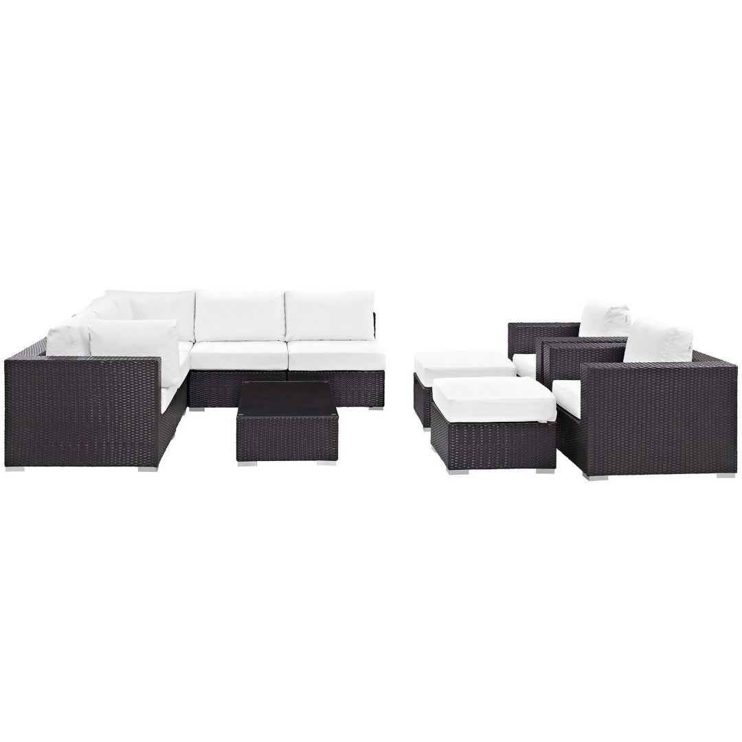 Create memorable outdoor moments with the Convene 10-Piece Outdoor Patio Sectional Set. Thoughtfully engineered for flexibility and comfort, this modular set combines weather-resistant materials with plush cushions to adapt to gatherings of any size — from relaxed poolside lounging to lively backyard entertaining. The contemporary synthetic rattan finish and powder-coated aluminum frame deliver low-maintenance durability and lasting style.