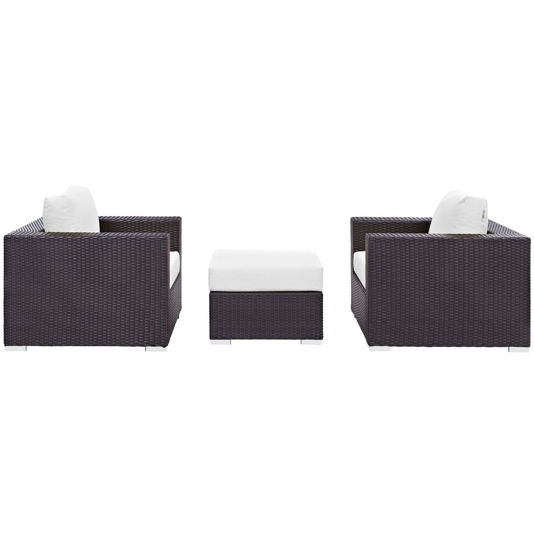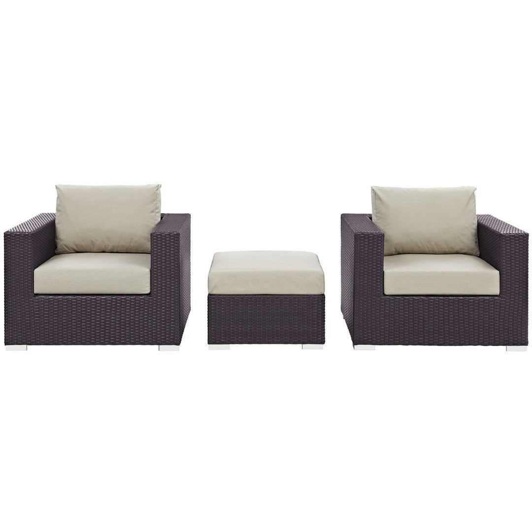 Create a welcoming outdoor lounge with the Convene 3-Piece Outdoor Patio Sofa Set by Modway. Thoughtfully engineered for modular living, this set combines durable materials and all-weather comfort to adapt to your patio, deck, or poolside. The synthetic rattan weave over a powder-coated aluminum frame delivers weather-resistant strength, while plush, quick-drying cushions provide lasting comfort and easy maintenance. Ideal for entertaining or relaxed afternoons, the Convene series offers a contemporary look that reconfigures to suit your space and needs.