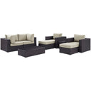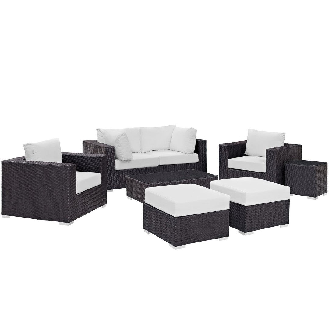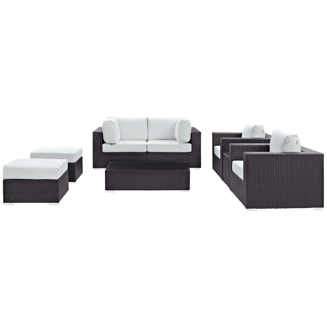 Elevate your outdoor living with the Convene 8-Piece Outdoor Patio Sectional Set by Modway — a modular, durable, and stylish solution designed for effortless entertaining and everyday relaxation. Combining weather-resistant synthetic rattan with a powder-coated aluminum frame and plush all-weather cushions, this set adapts to gatherings large and small while delivering lasting comfort and low-maintenance performance. Its modular pieces reconfigure easily to suit patios, decks, poolside lounges, or backyard dining spaces, offering both contemporary design and functional versatility.