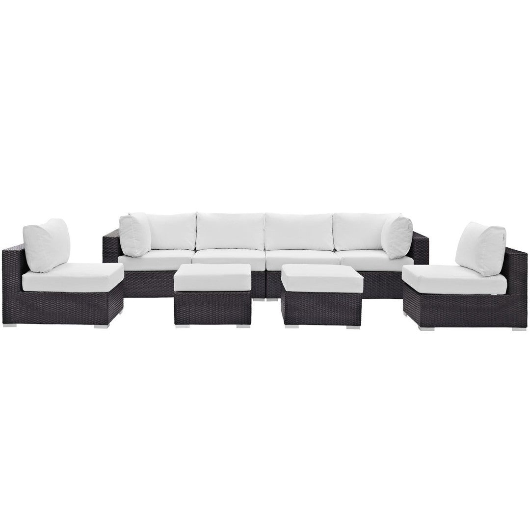 Create an inviting outdoor living space with this versatile 8-piece sectional set from the Convene series. Crafted for comfort and durability, the modular design adapts to gatherings of all sizes—whether you’re hosting a backyard BBQ, lounging poolside, or enjoying a quiet evening outdoors. Weather-resistant materials and plush cushions deliver a refined, low-maintenance exterior seating solution that balances style and functionality.