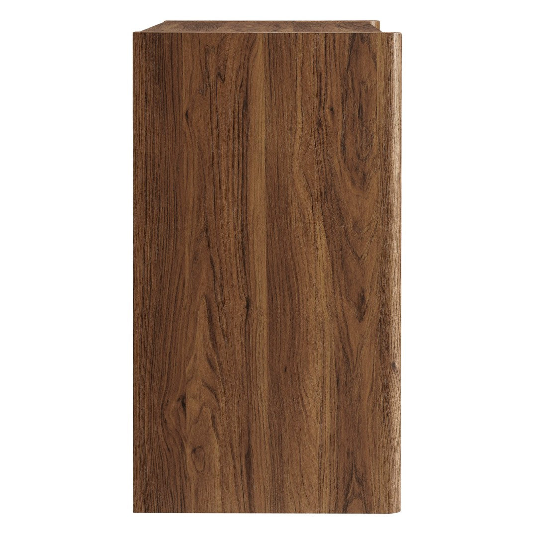 Give your living space a modern focal point with this sculpted accent cabinet that blends form and function. Its wave-textured slatted doors and matte laminated finish create subtle visual movement while the spacious interior and sturdy base deliver practical storage for linens, serveware, or everyday essentials.