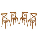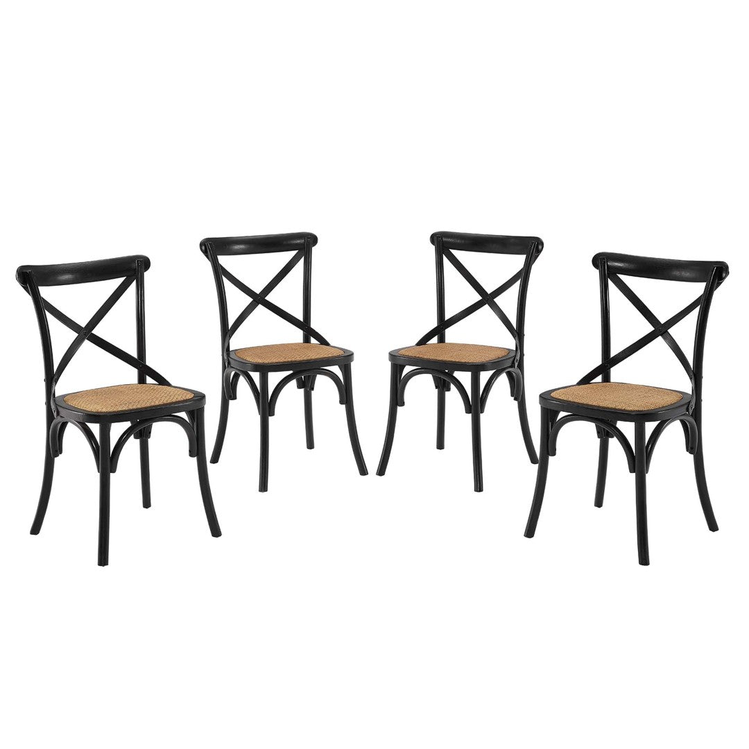 Bring rustic charm to your dining space with this set of four side chairs that blend country-style warmth and modern simplicity. Each chair features an open wooden backrest and tapered legs for a timeless silhouette that complements cottages, farmhouse interiors, or contemporary urban homes. Delivered fully assembled, these chairs offer immediate comfort and visual appeal for everyday meals or relaxed tea time.