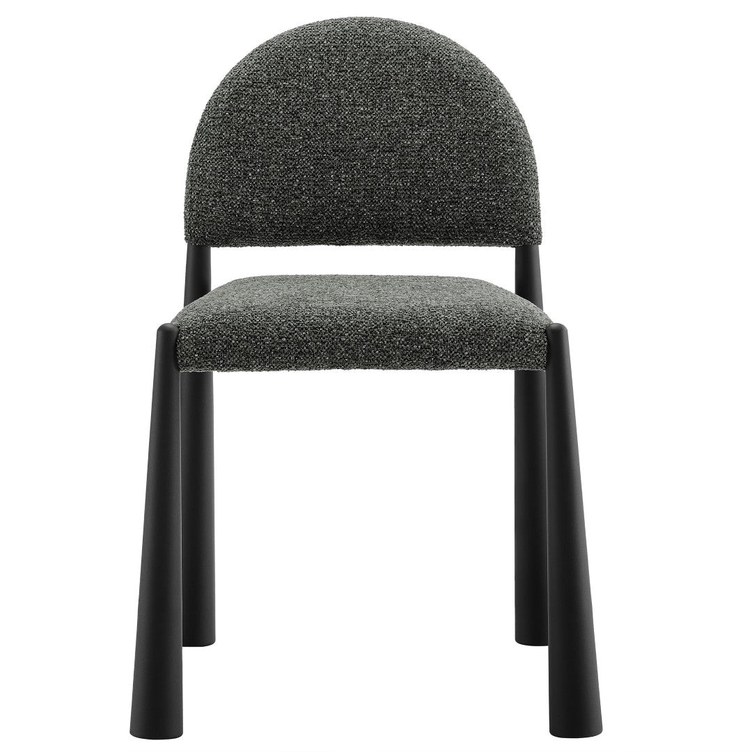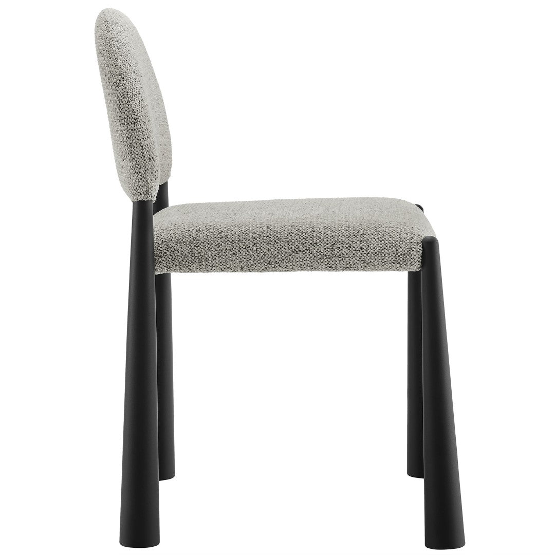 Bring mid-century modern elegance to your dining or living area with the Hayley Upholstered Fabric Dining Side Chair. Combining retro-inspired curves with contemporary materials, this fully assembled chair offers a comfortable, stylish seat for everyday meals or occasional entertaining. Its bouclé-style, OEKO-TEX® STANDARD 100 certified upholstery and tapered tubular metal legs create a refined silhouette that complements a variety of interiors while non-marking floor glides protect your floors.