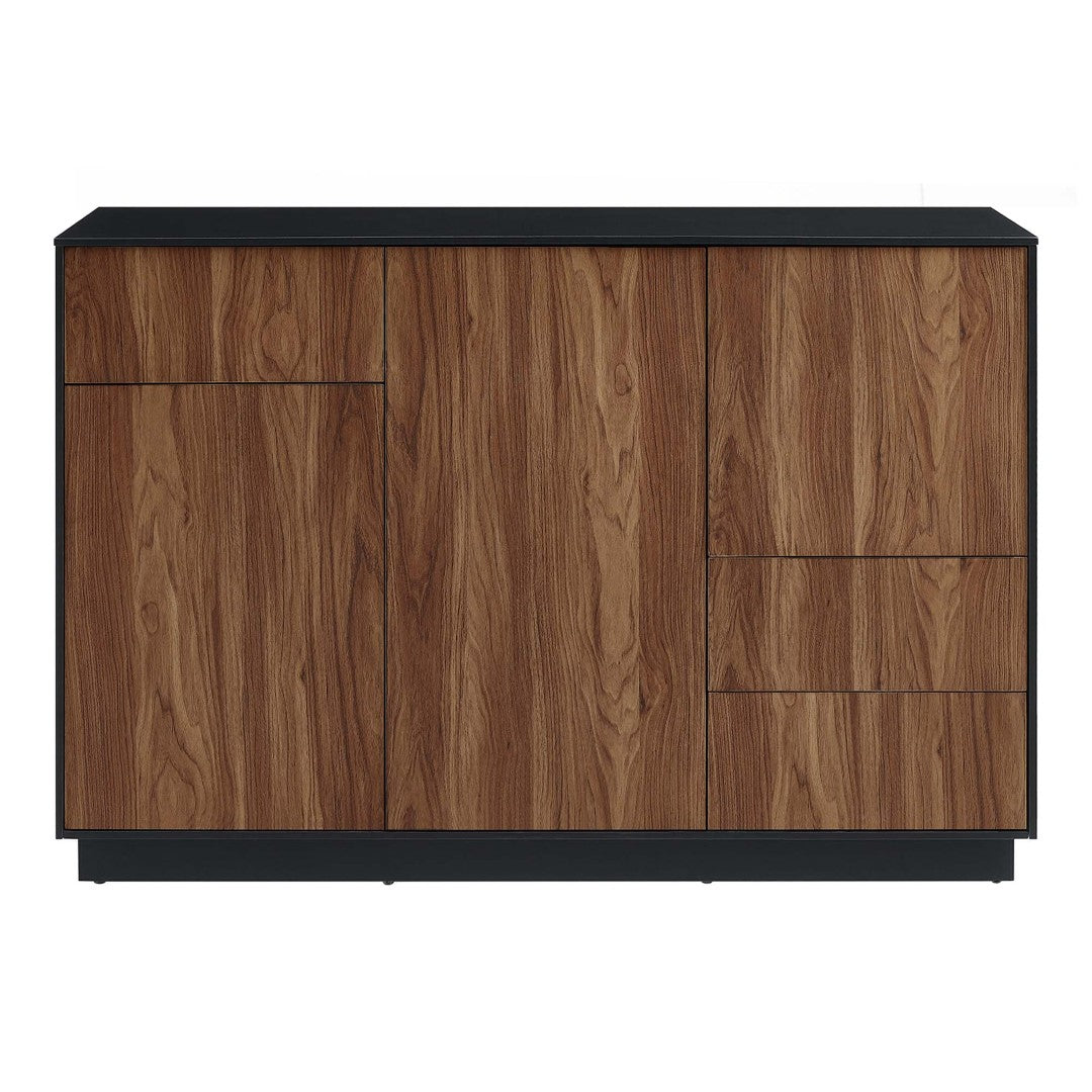 Bring modern rustic style and practical storage together with this versatile sideboard. Its wood-grain laminate finish and clean silhouette suit contemporary, industrial, or farmhouse interiors while providing adaptable function as a buffet, sideboard, or TV stand. Thoughtful features like push-to-open doors, full-glide drawers, and concealed shelving make organizing media, dinnerware, or everyday items effortless.
